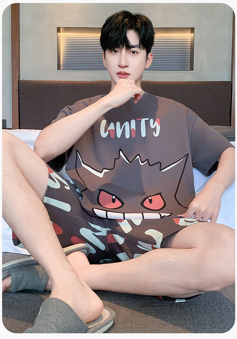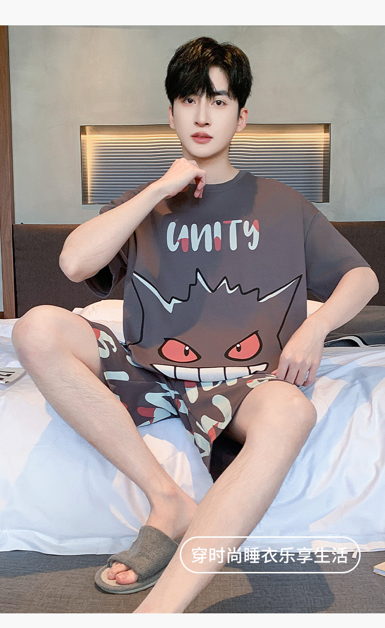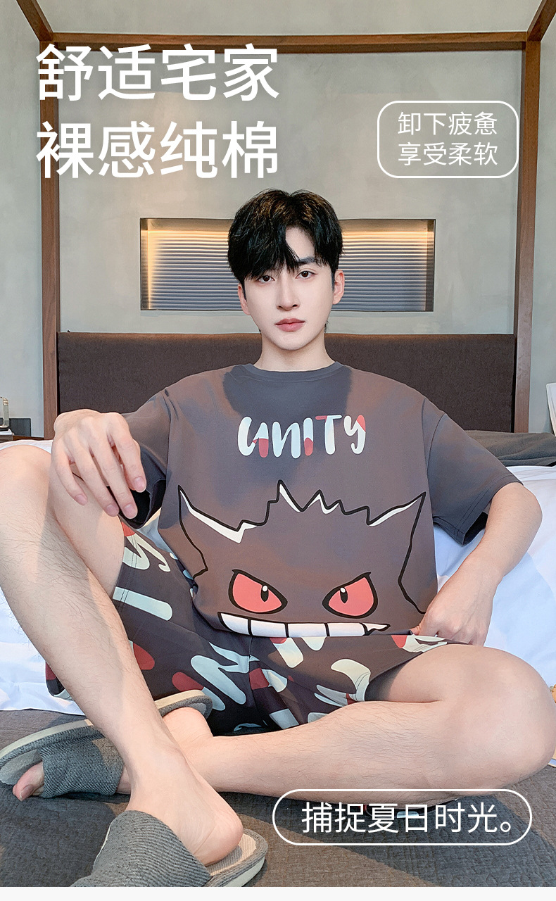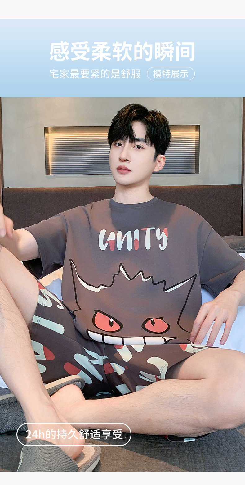 2025 새로운 도착 잠옷 남자 여름 순면 반팔 얇은 남자 십대 소년의 홈 의류 세트 여름스토어 가기