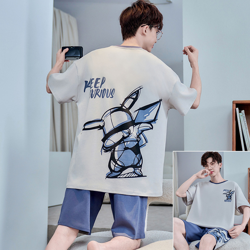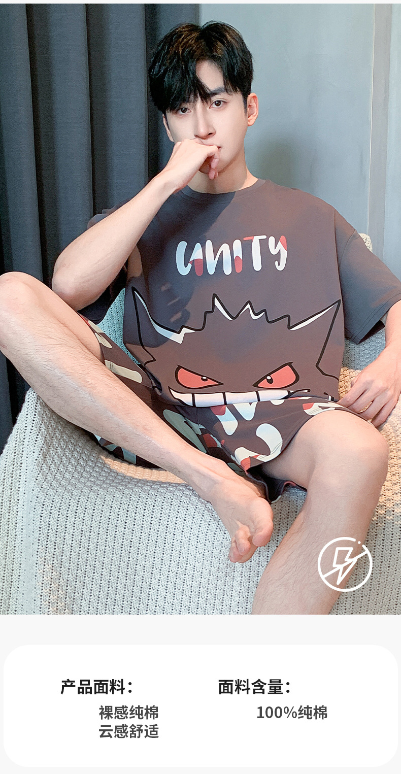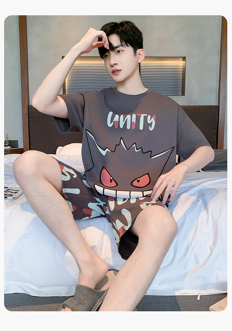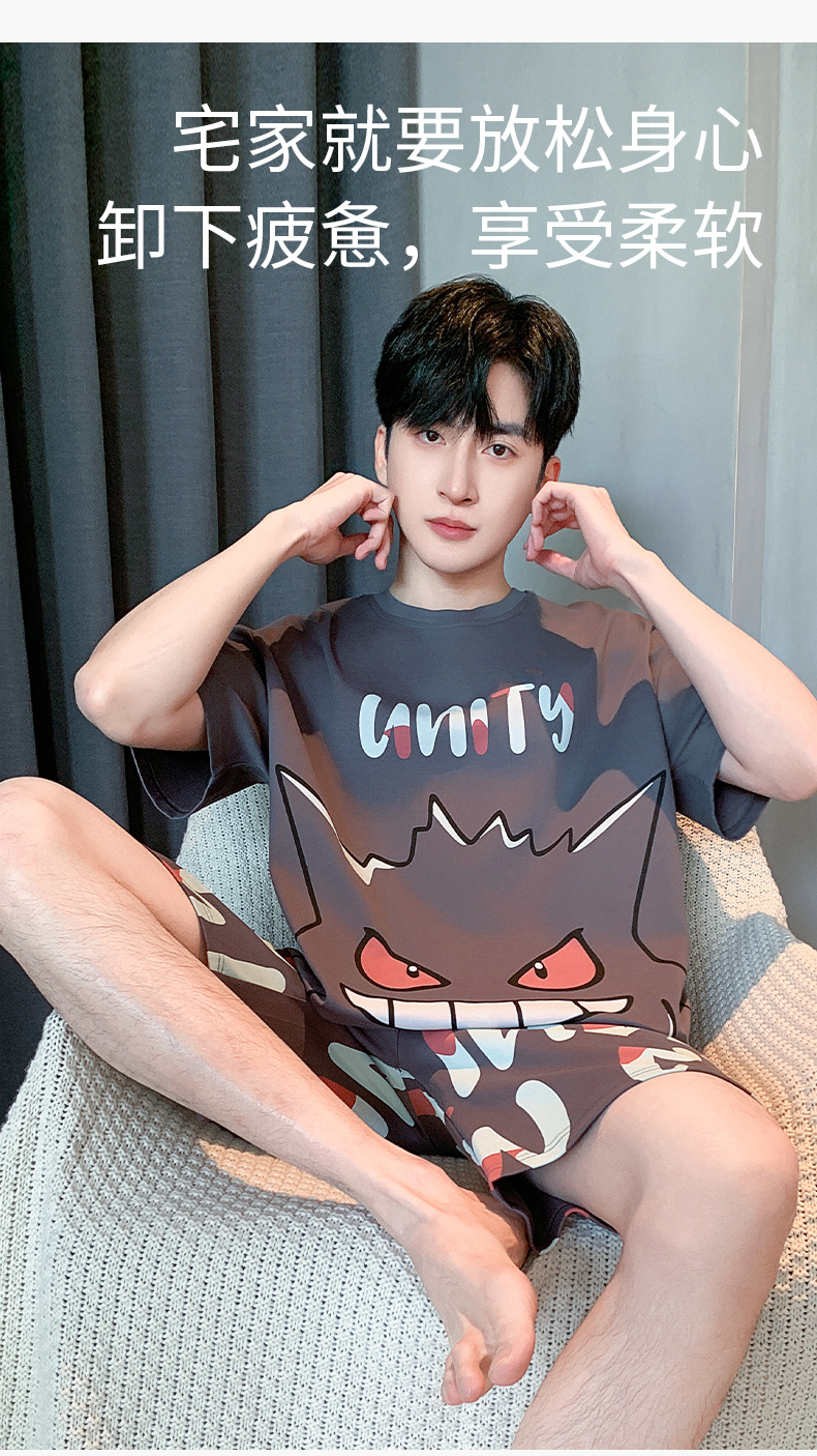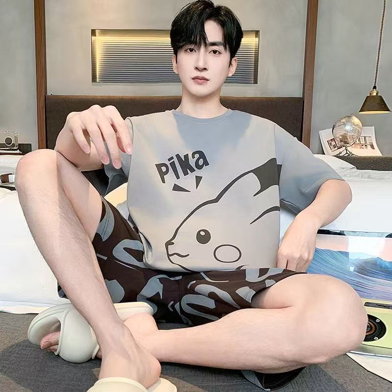 2025 새로운 도착 잠옷 남자 여름 순면 반팔 얇은 남자 십대 소년의 홈 의류 세트 여름스토어 가기