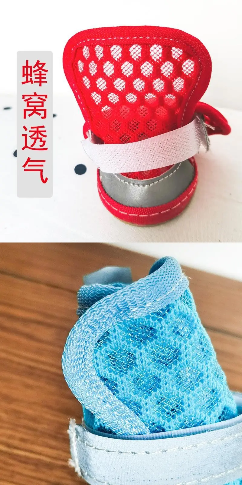강아지 여름 신발, 소형견 더러움 방지 발 커버, 애완동물 비숑 테디 포메라니안 강아지 여름에 떨어지지 않는 발 커버