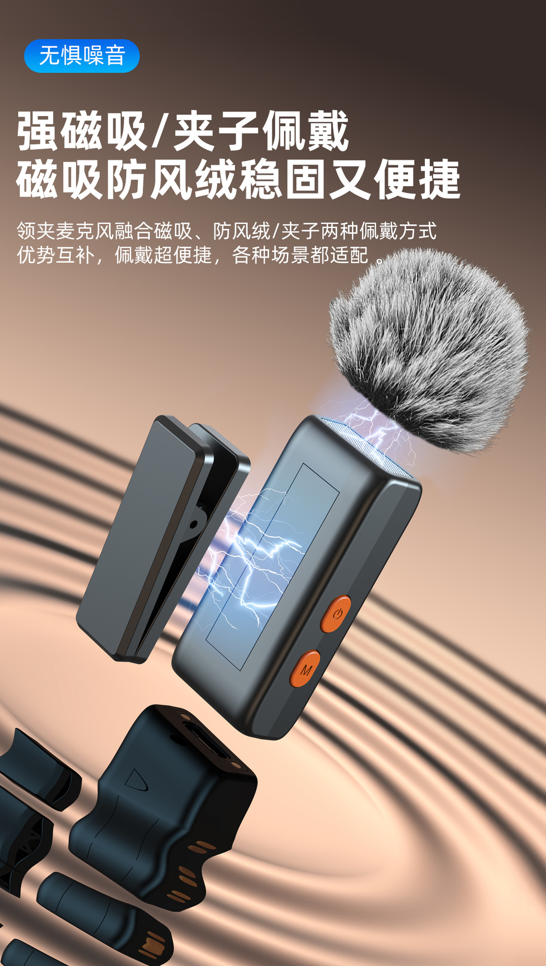 무선 자기 칼라 클립 마이크 원 버튼 소음 감소 라이브 상점 인터뷰 Vlog 야외 라디오 마이크