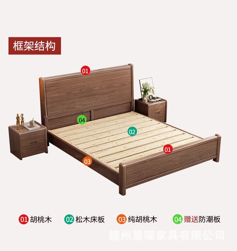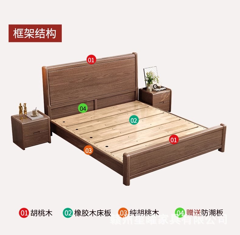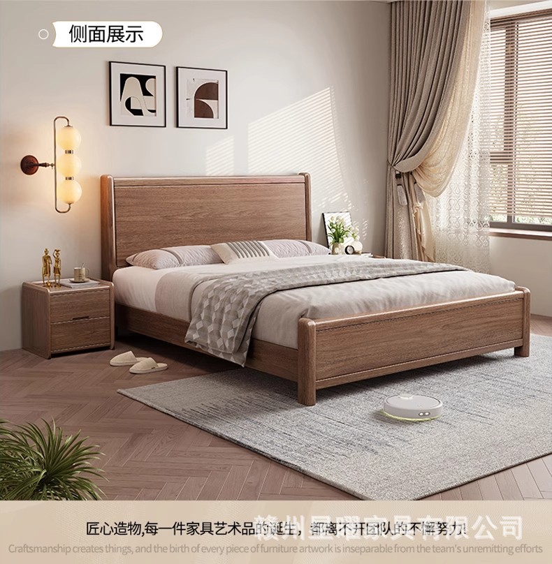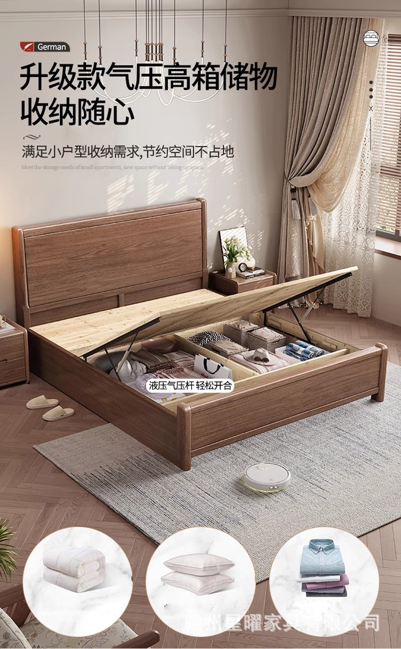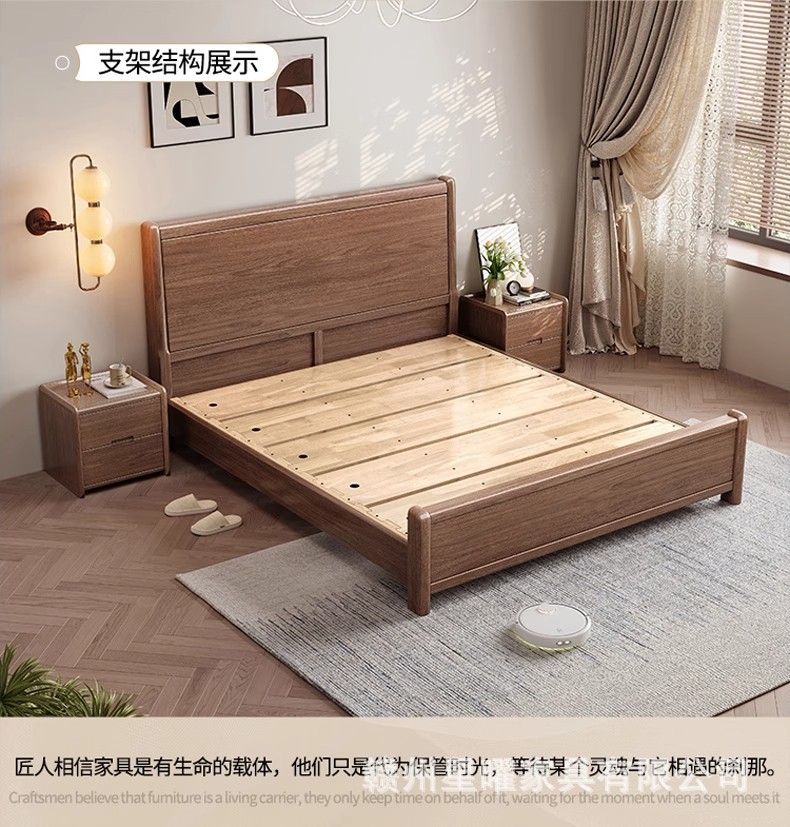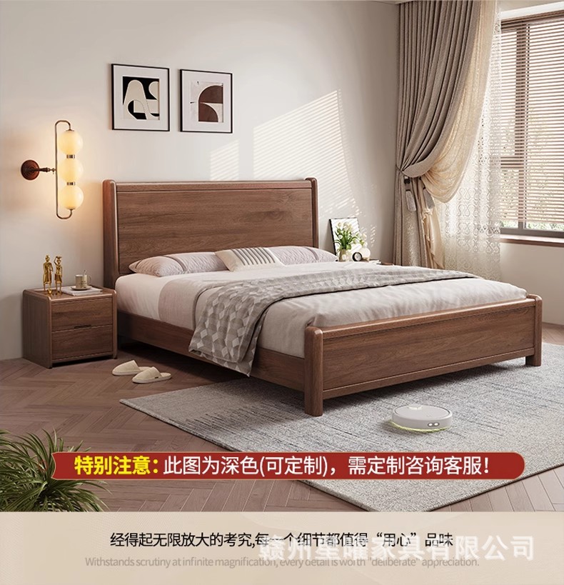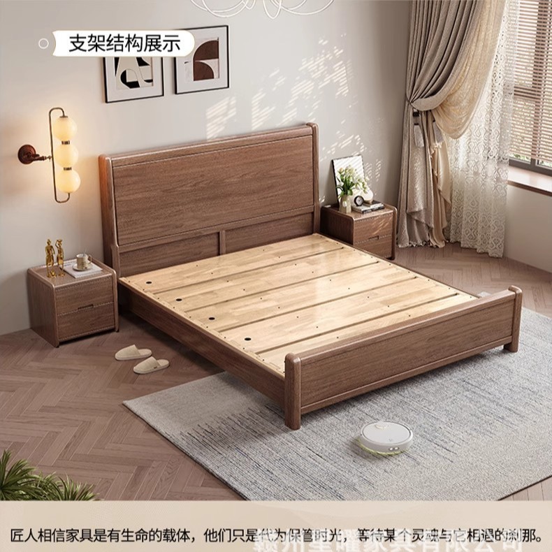 모든 단단한 나무 침대 1.8m 호두나무 침대 현대적인 미니멀리스트 침실 더블 침대 북유럽 마스터 침실 통나무 수납 웨딩 침대스토어 가기