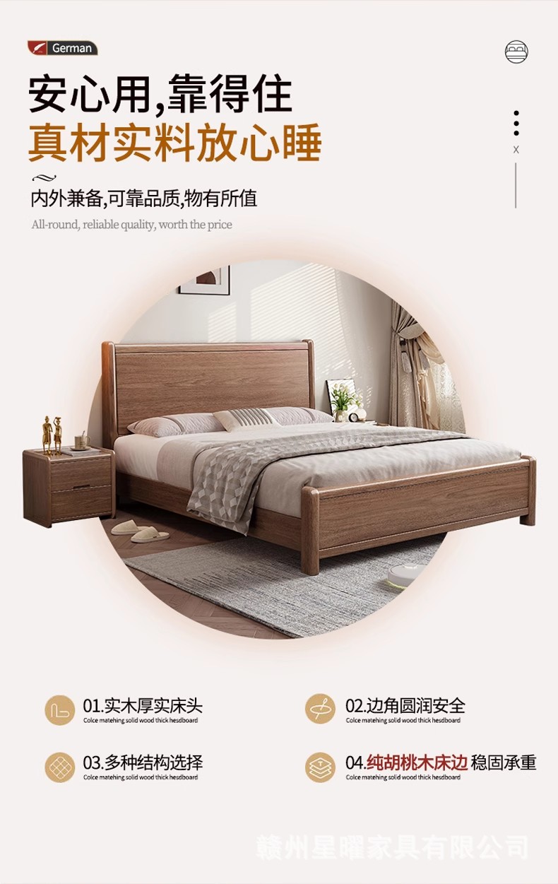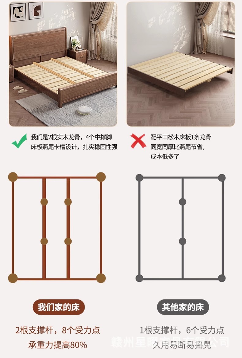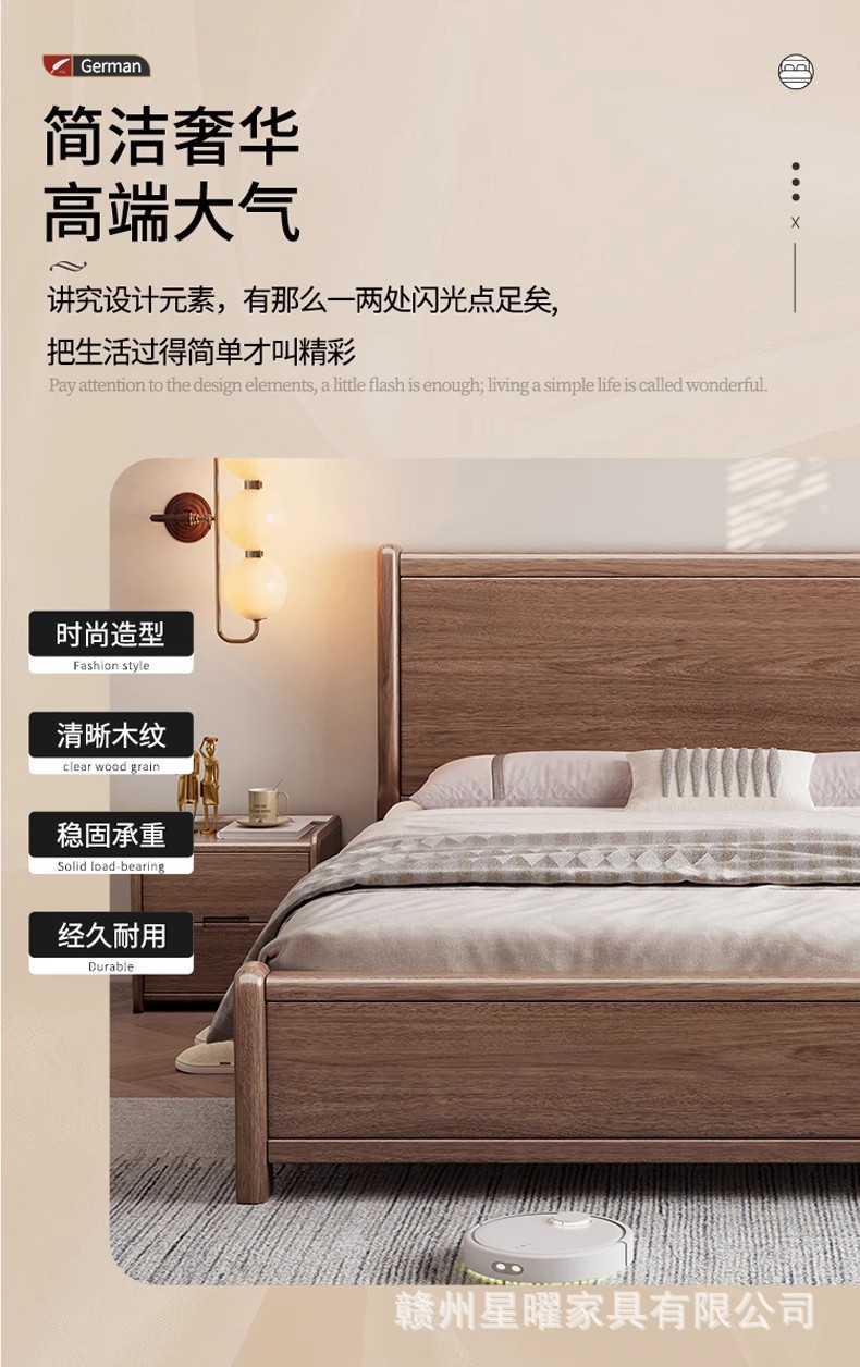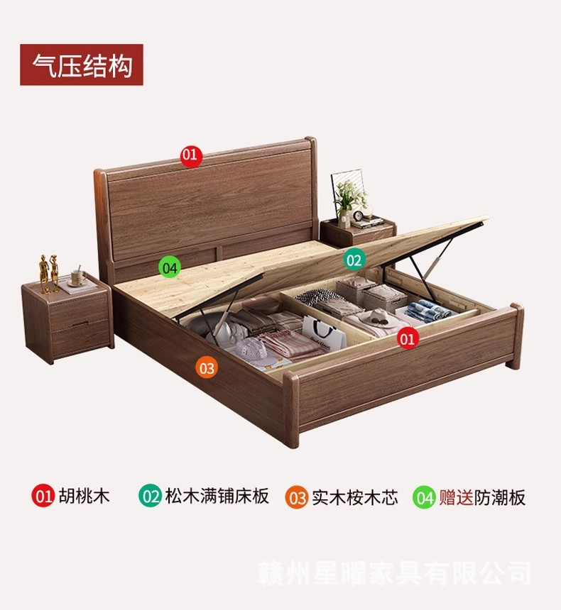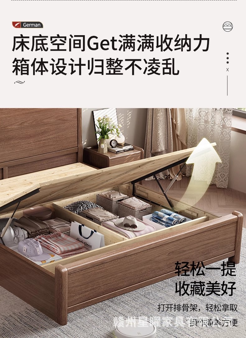 모든 단단한 나무 침대 1.8m 호두나무 침대 현대적인 미니멀리스트 침실 더블 침대 북유럽 마스터 침실 통나무 수납 웨딩 침대스토어 가기