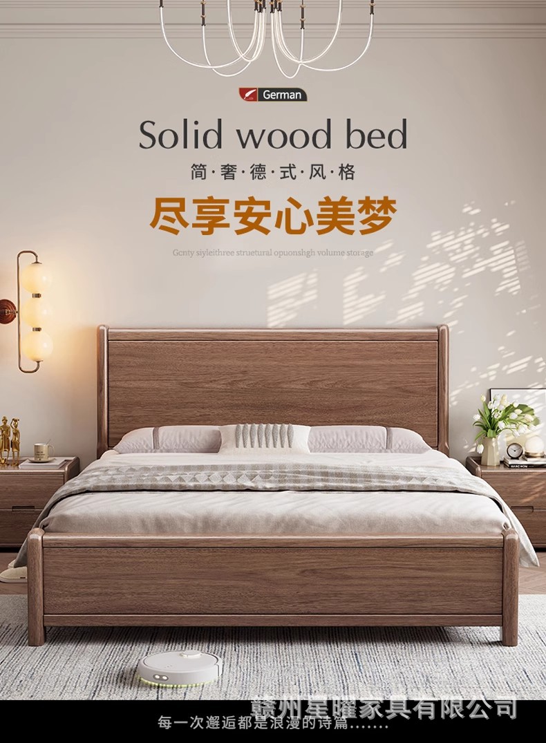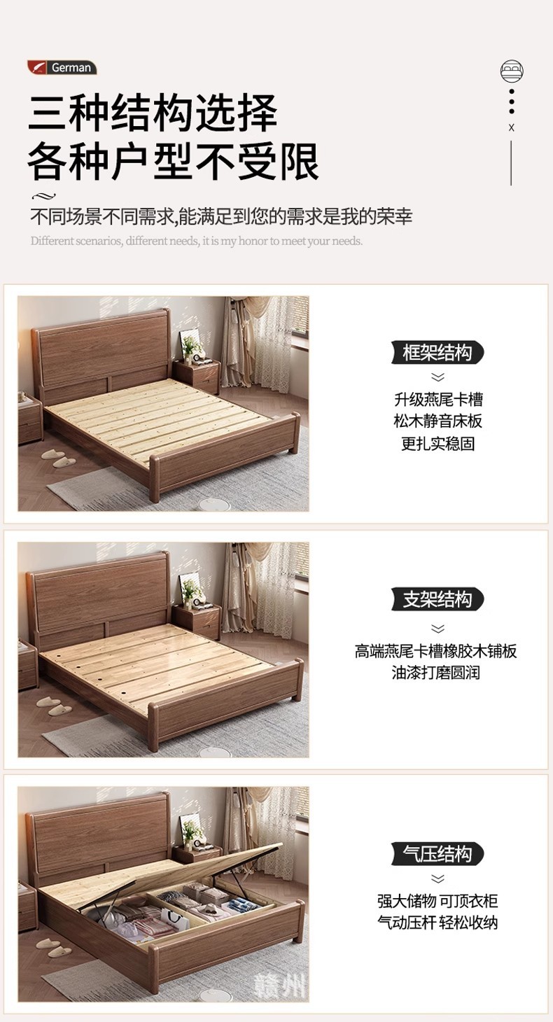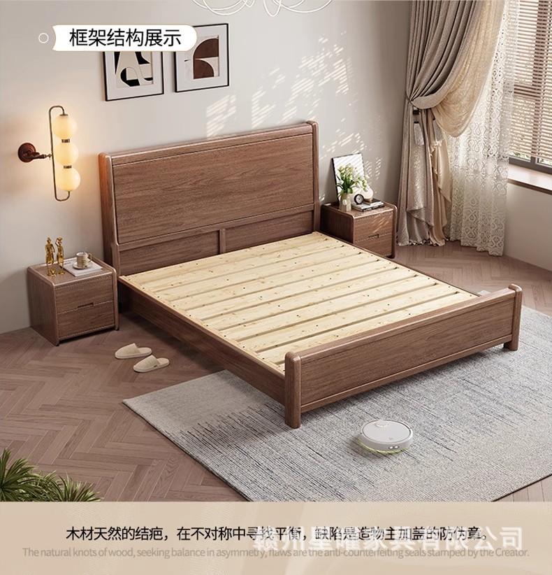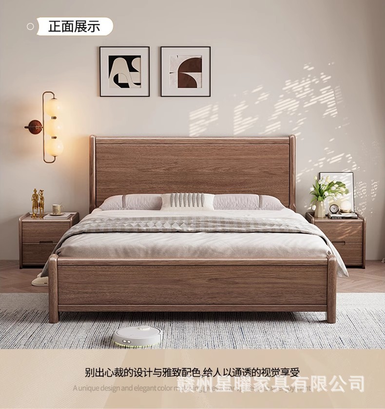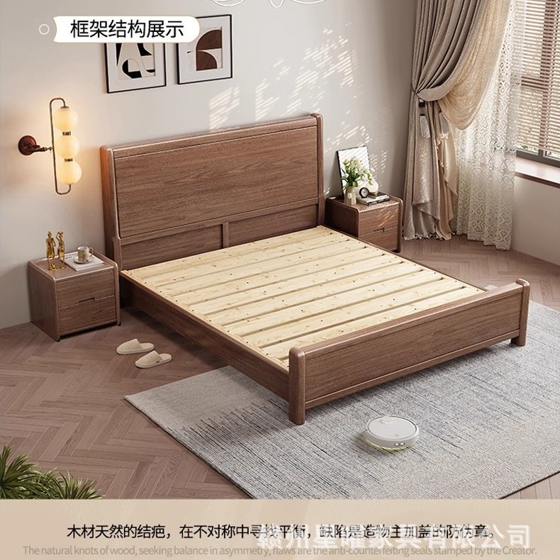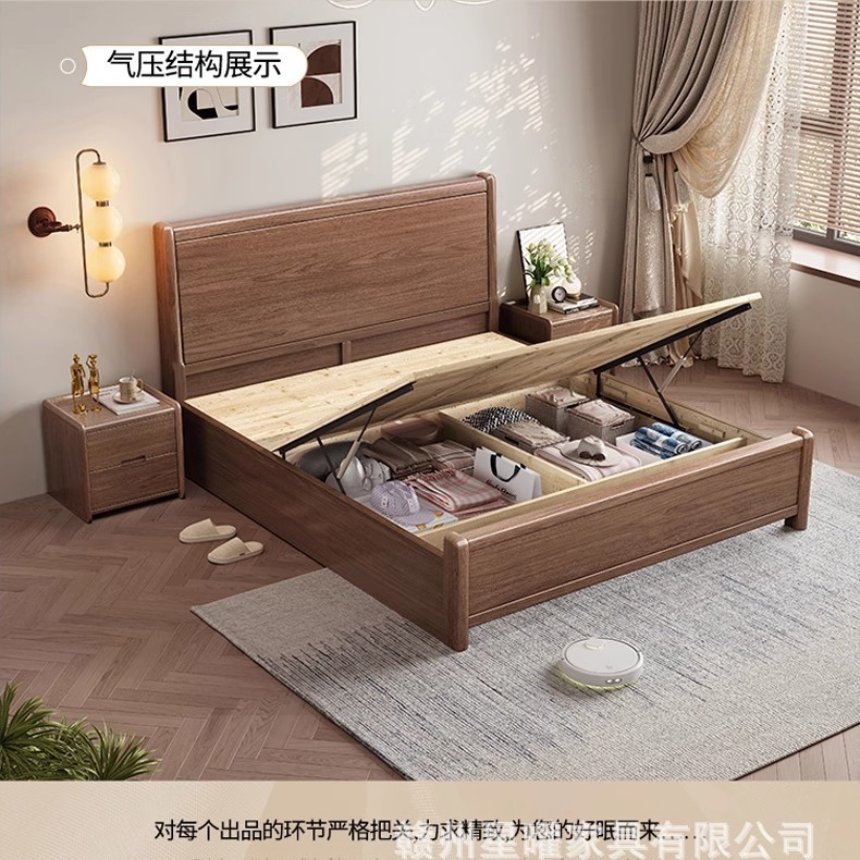 모든 단단한 나무 침대 1.8m 호두나무 침대 현대적인 미니멀리스트 침실 더블 침대 북유럽 마스터 침실 통나무 수납 웨딩 침대