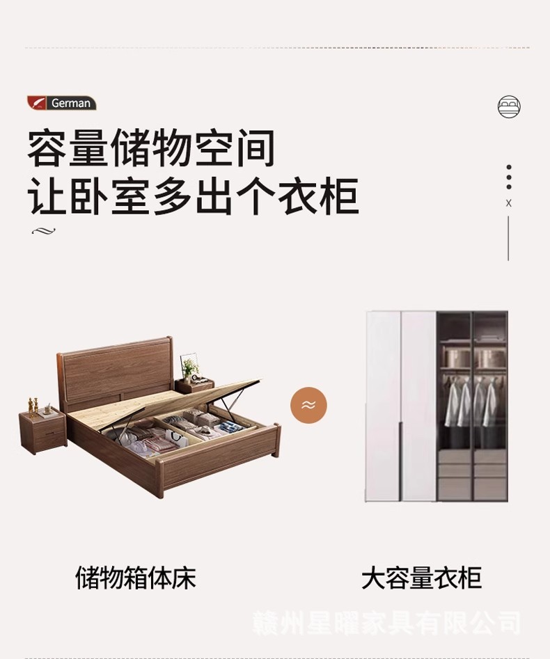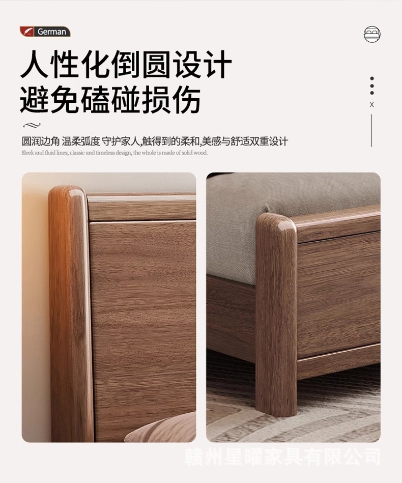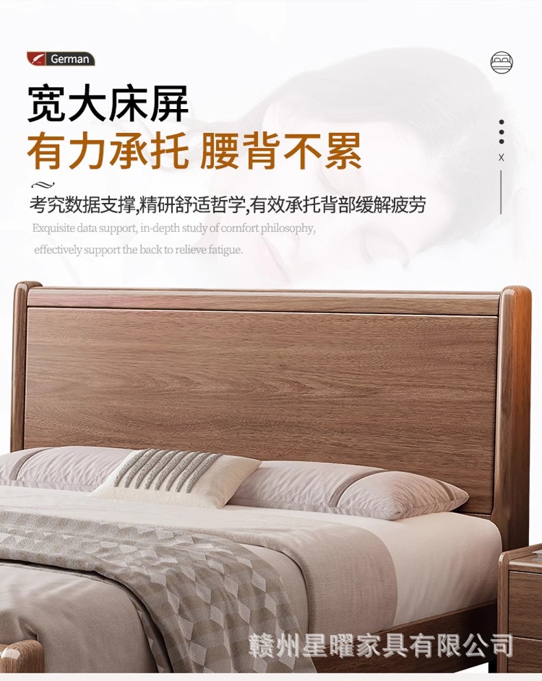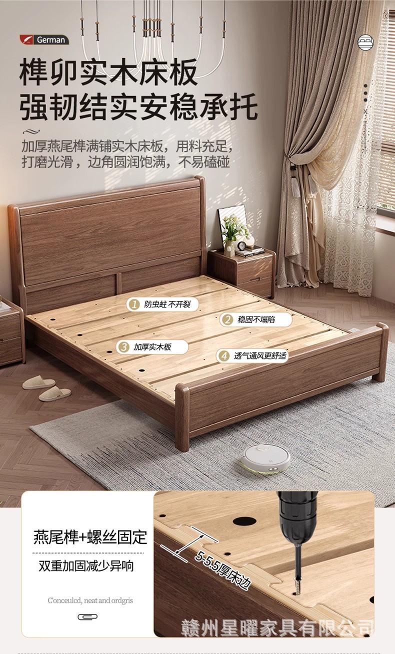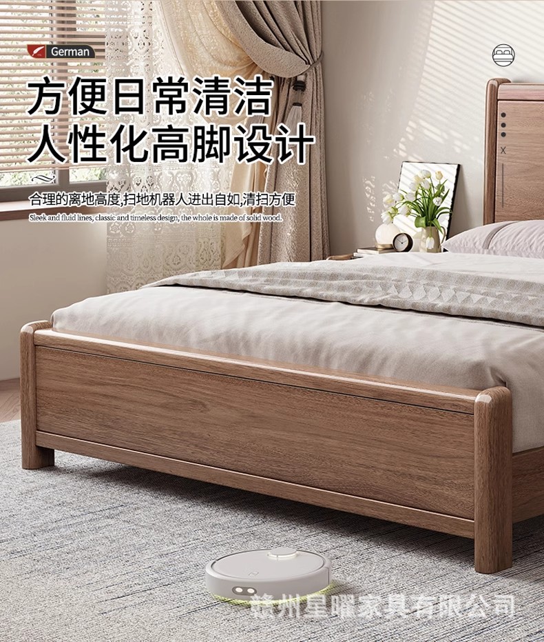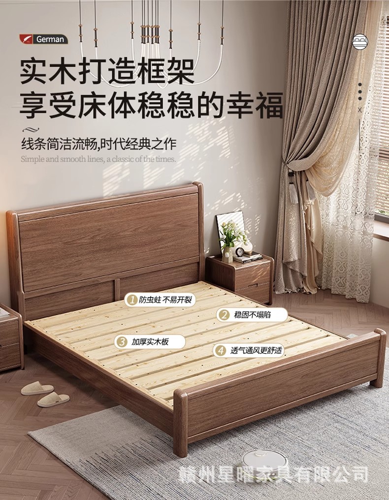 모든 단단한 나무 침대 1.8m 호두나무 침대 현대적인 미니멀리스트 침실 더블 침대 북유럽 마스터 침실 통나무 수납 웨딩 침대