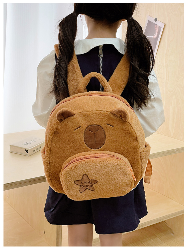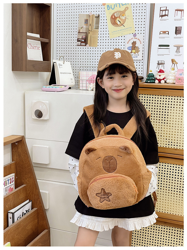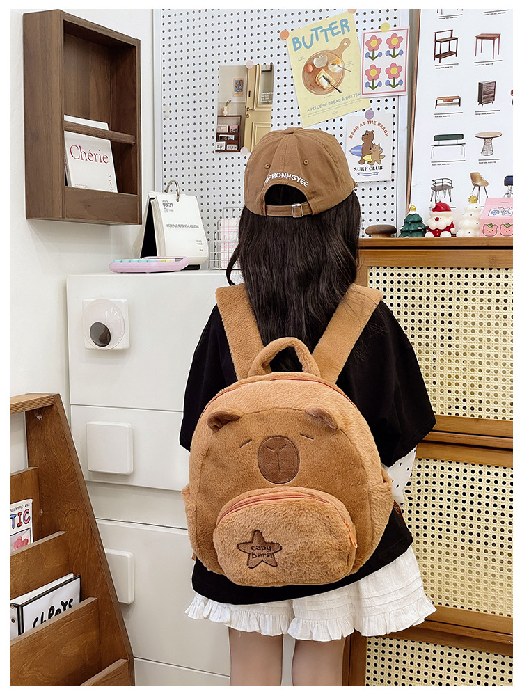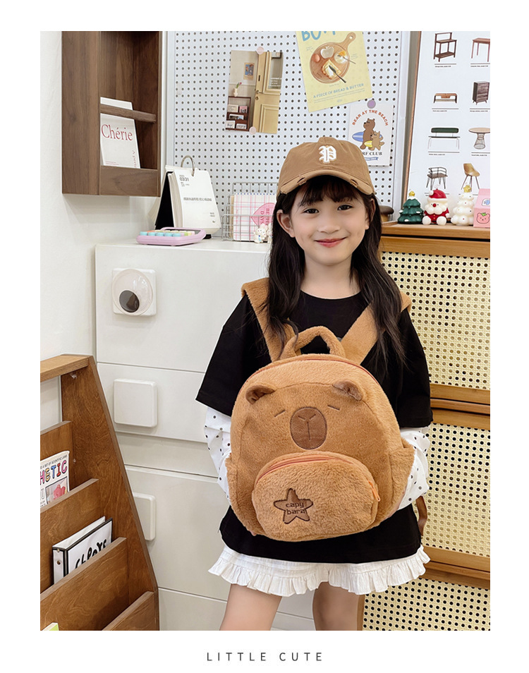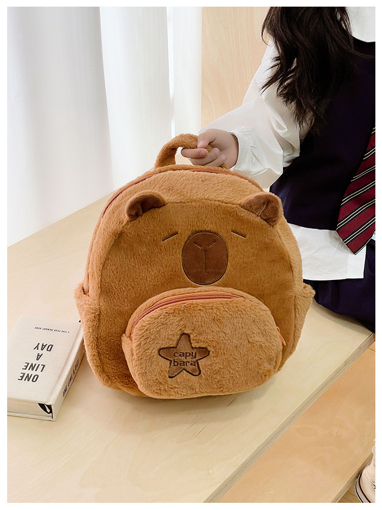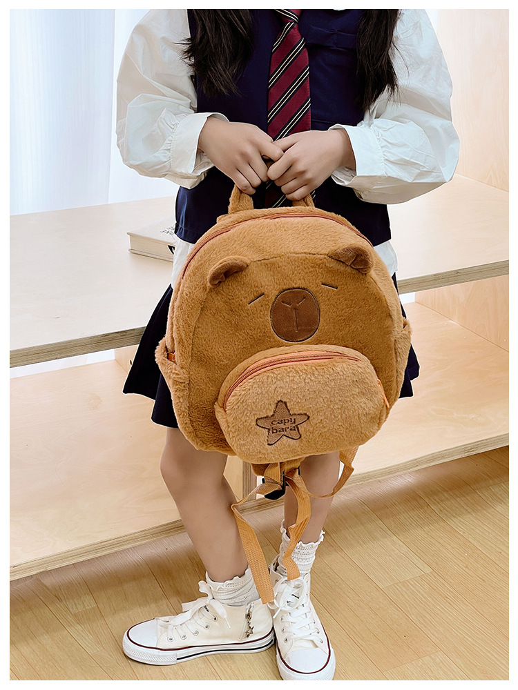 Kapibala Capybara 배낭 소녀 나들이 캐주얼 배낭 유치원 어린이 플러시 학교 가방 여행 가방