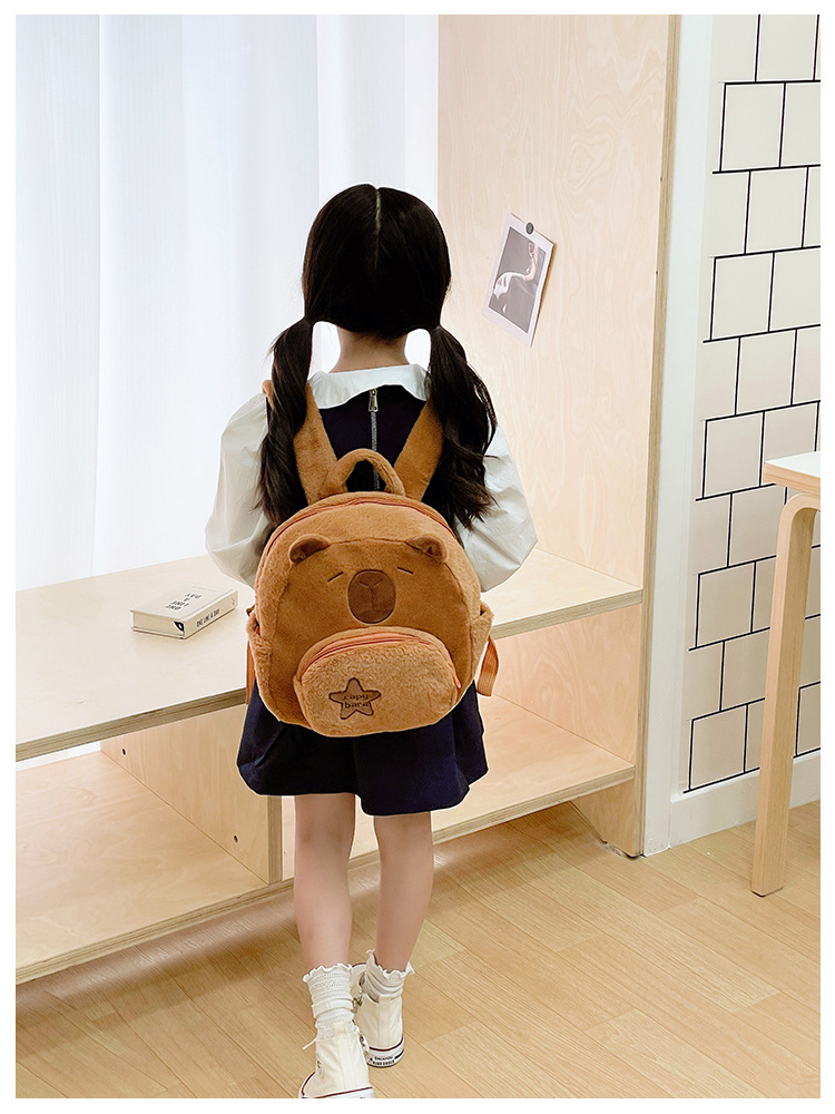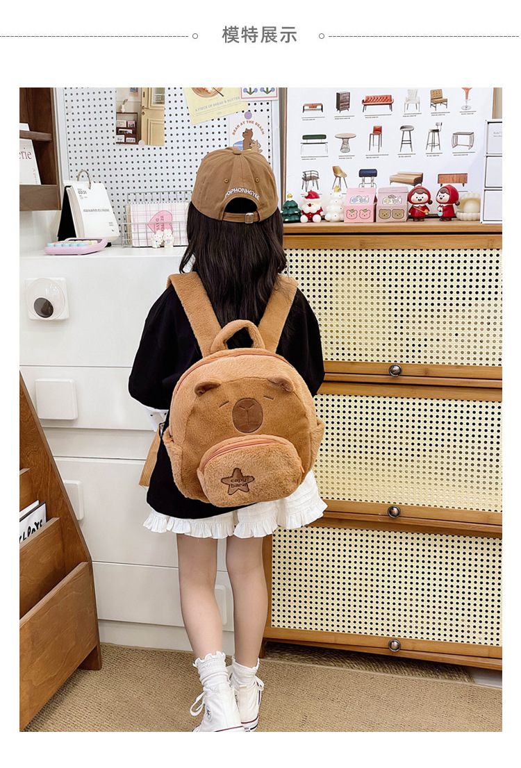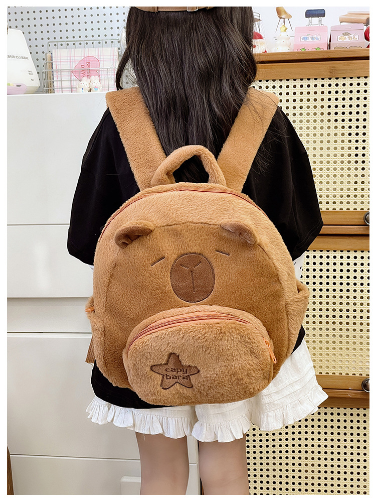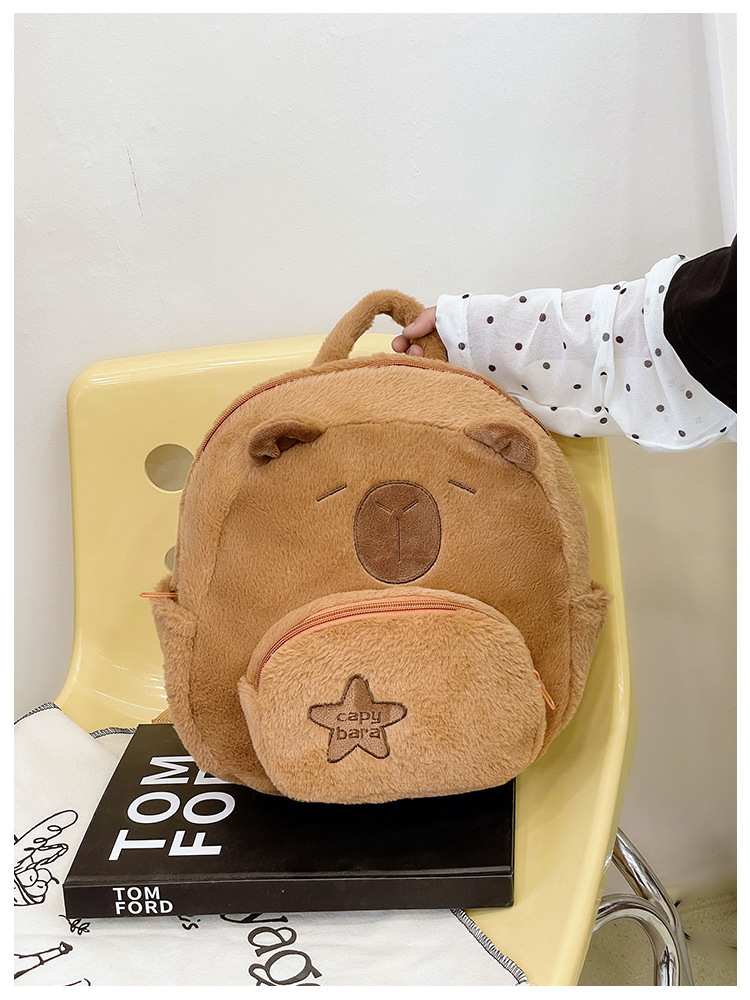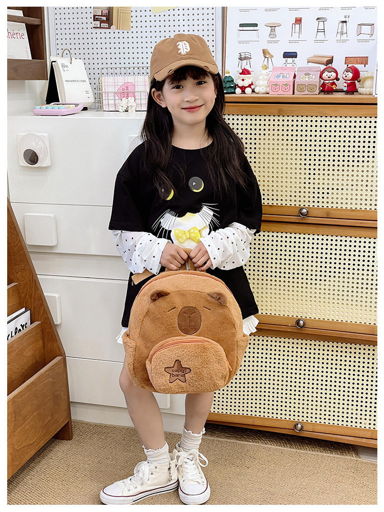 Kapibala Capybara 배낭 소녀 나들이 캐주얼 배낭 유치원 어린이 플러시 학교 가방 여행 가방
