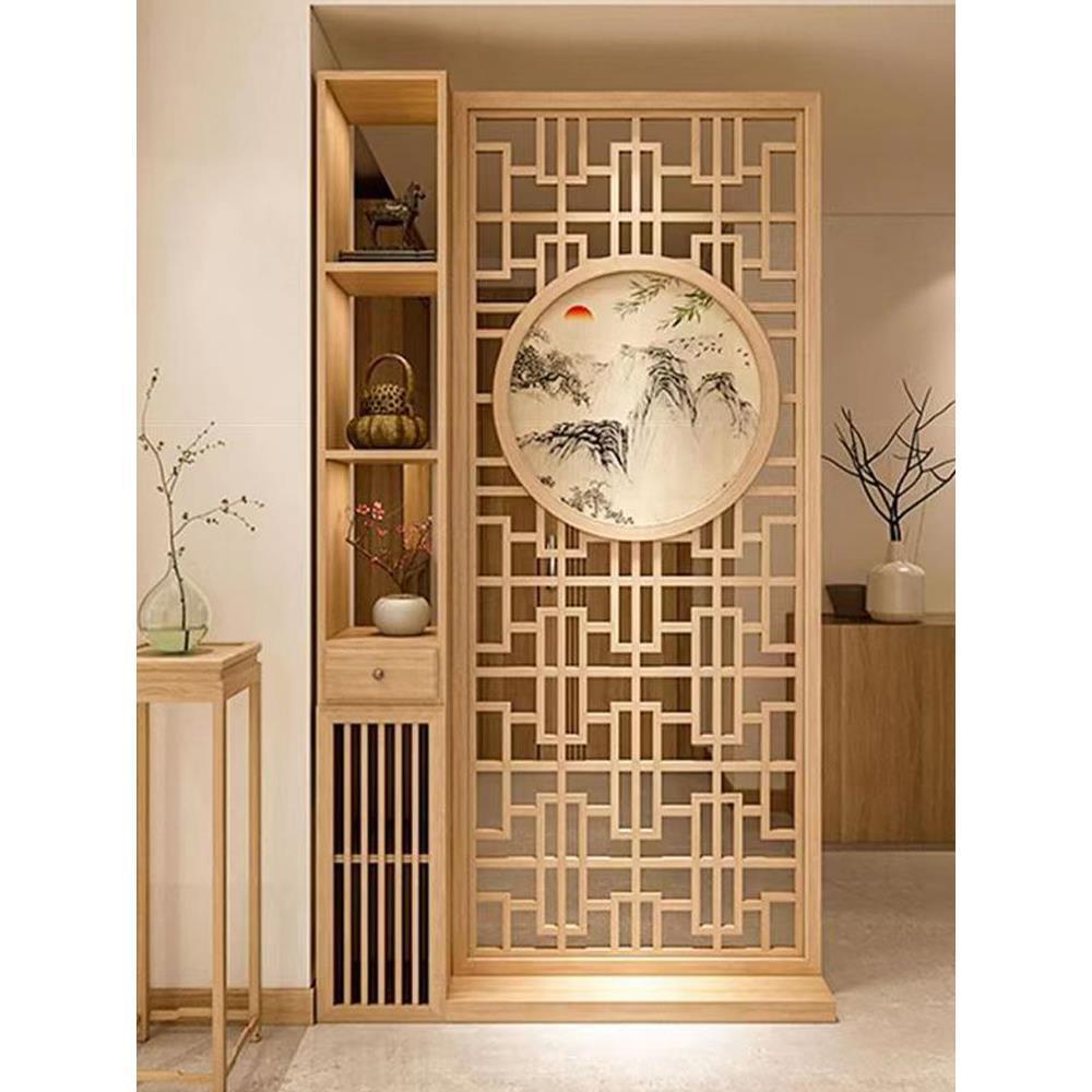 새로운 중국식 솔리드 우드 스크린 그릴 입구 캐비닛 거실 가정용 오른쪽 문 입구 문 음영 입구 파티션스토어 가기
