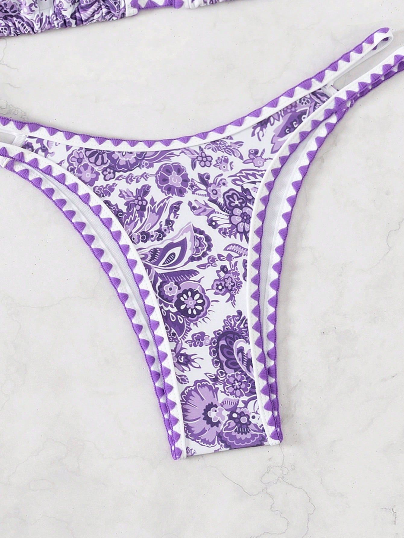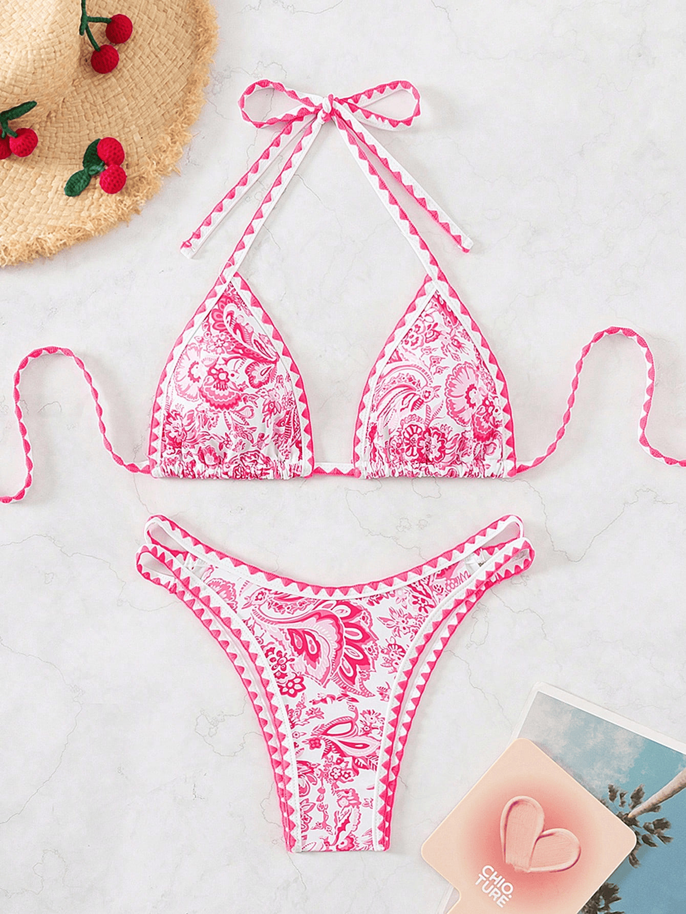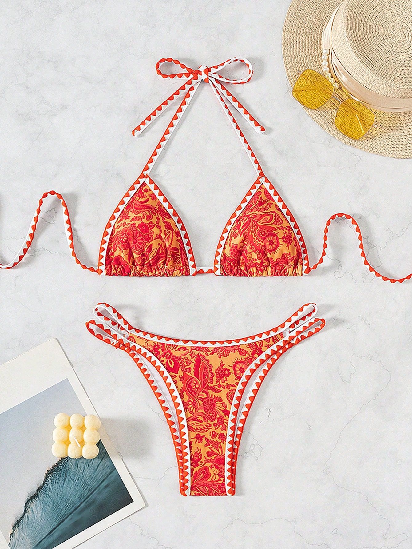 2025 새로운 AliExpress 유럽과 미국의 인쇄 홀터넥 섹시한 비키니 스플릿 수영복 여성 비치 수영복 비키니