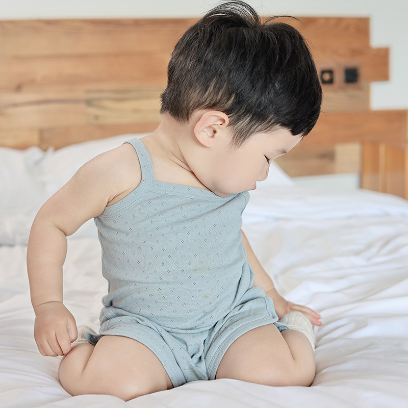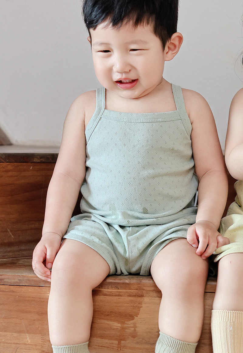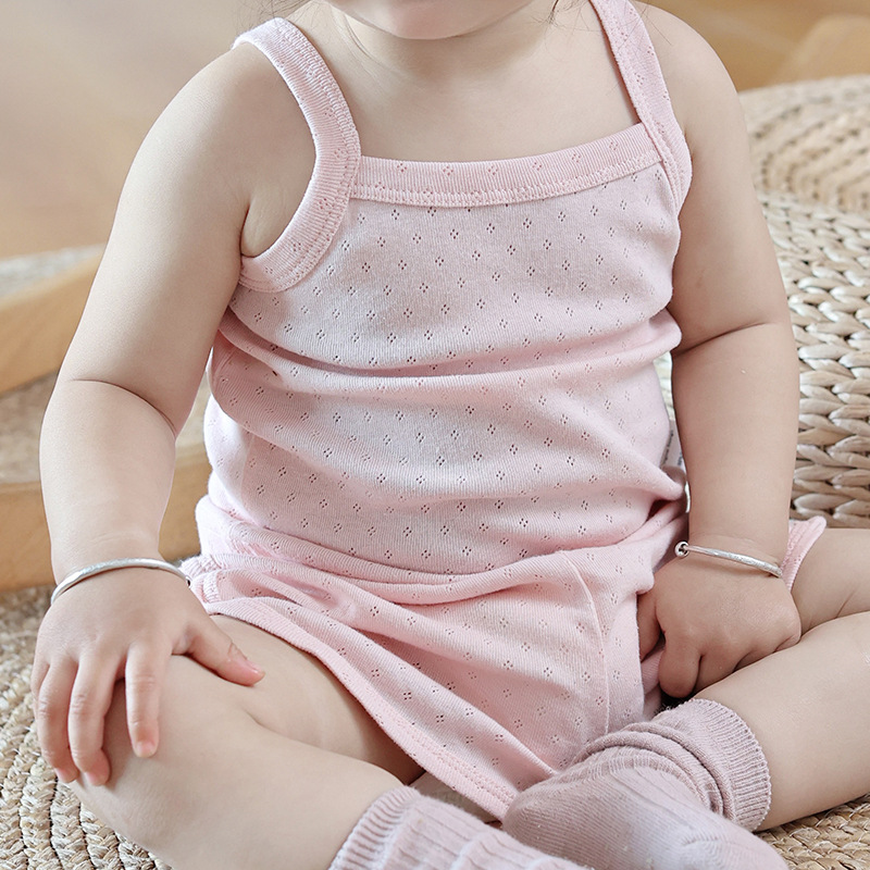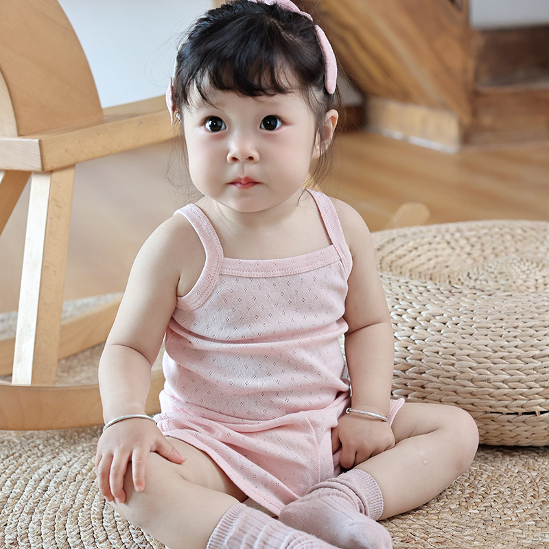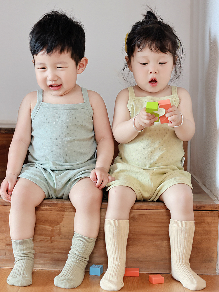 어린이 세트 2025 여름 얇은 단색 소녀 슬링 세트 순수한 면 통기성 여름 아기 소녀를위한 투피스 세트