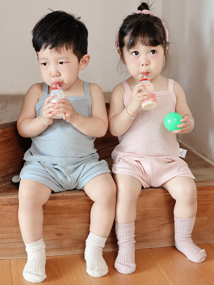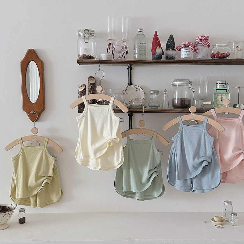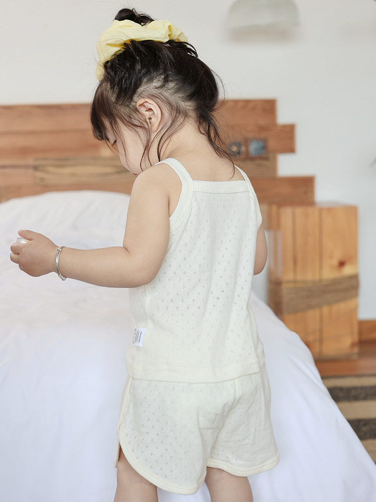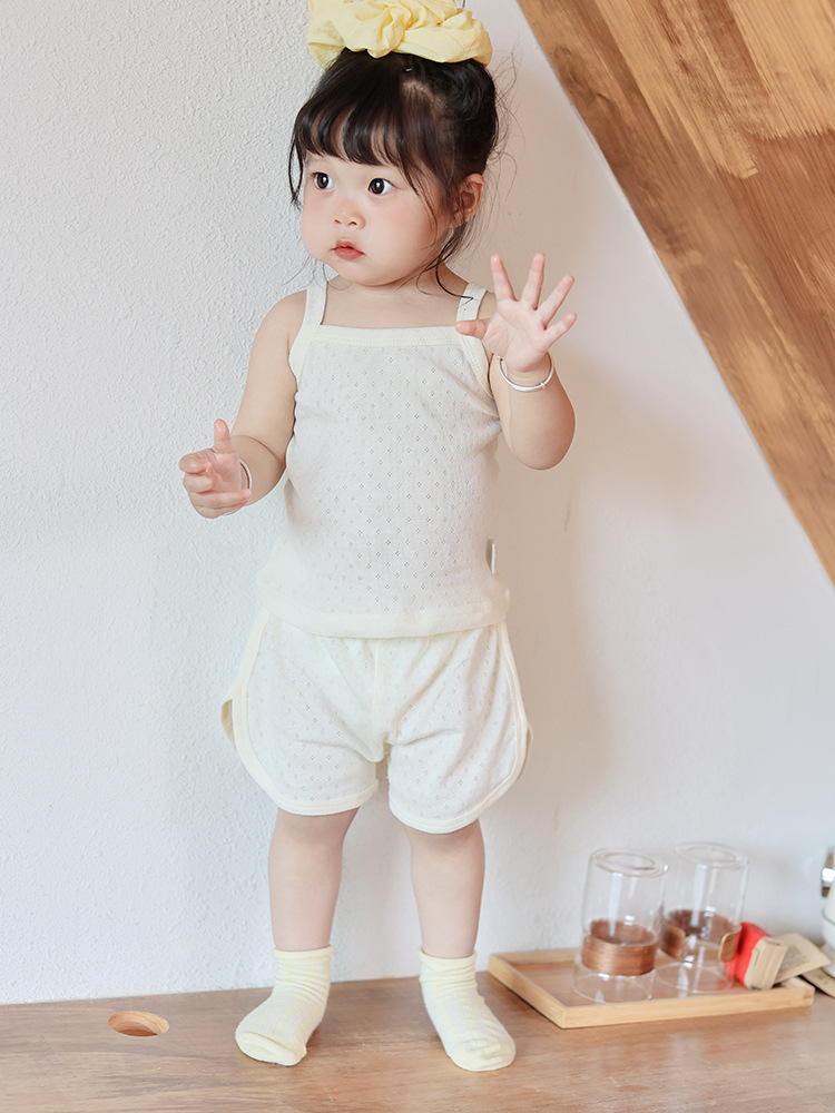 어린이 세트 2025 여름 얇은 단색 소녀 슬링 세트 순수한 면 통기성 여름 아기 소녀를위한 투피스 세트스토어 가기