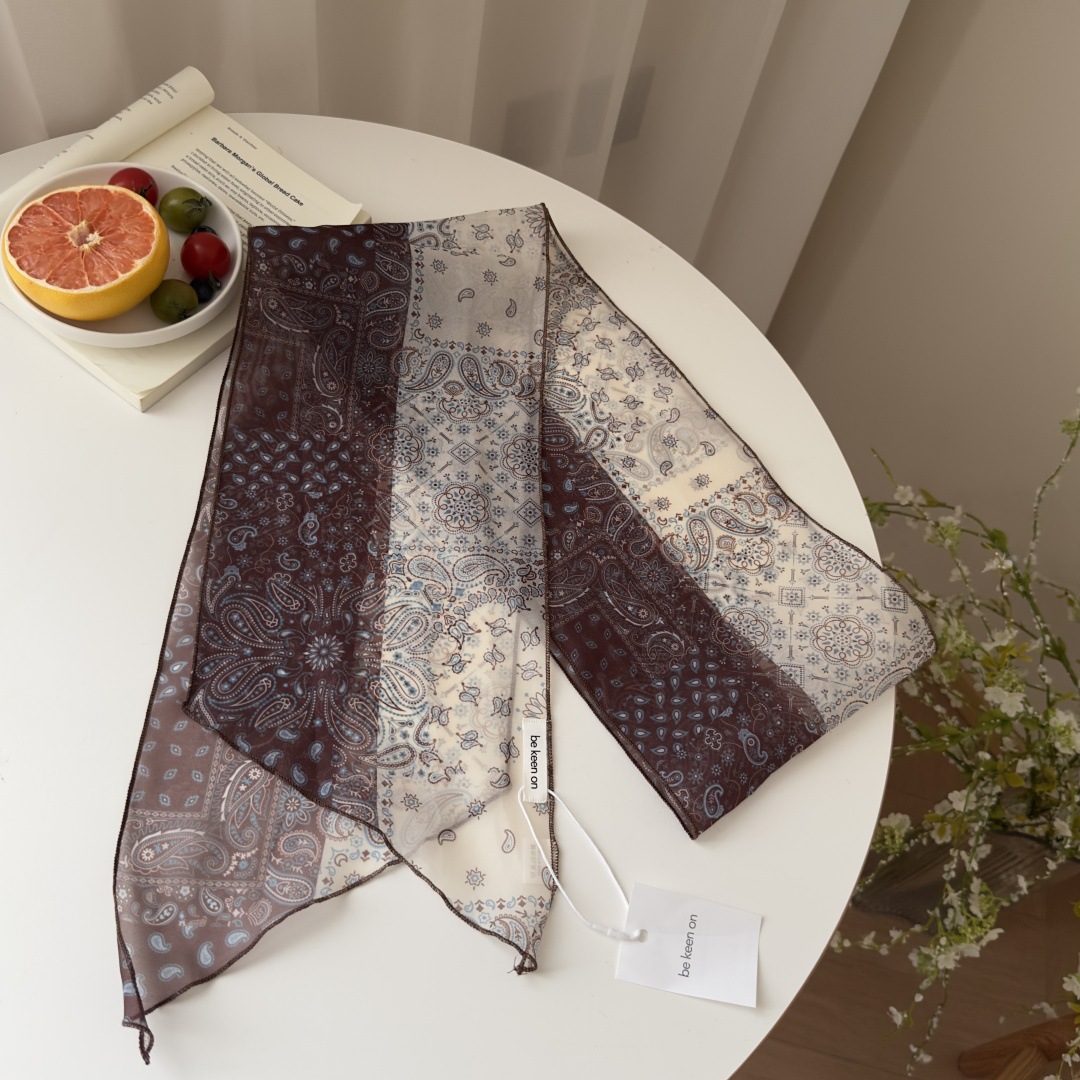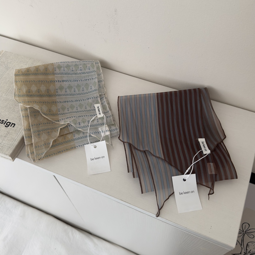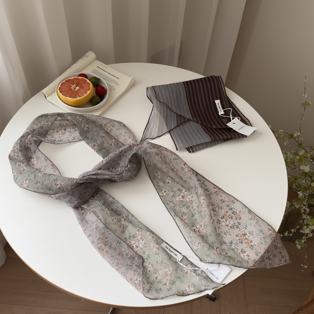 일본식 오간자 줄무늬 날씬한 스카프 여성의 2025 새로운 하이 엔드 센스 레트로 긴 스카프 목 착용스토어 가기