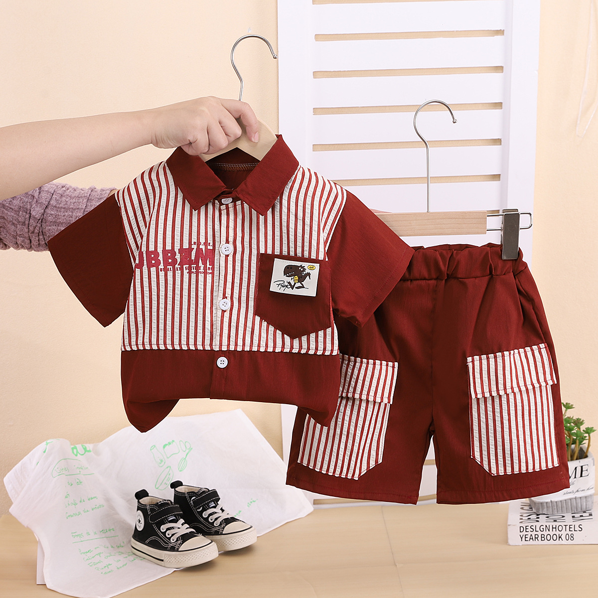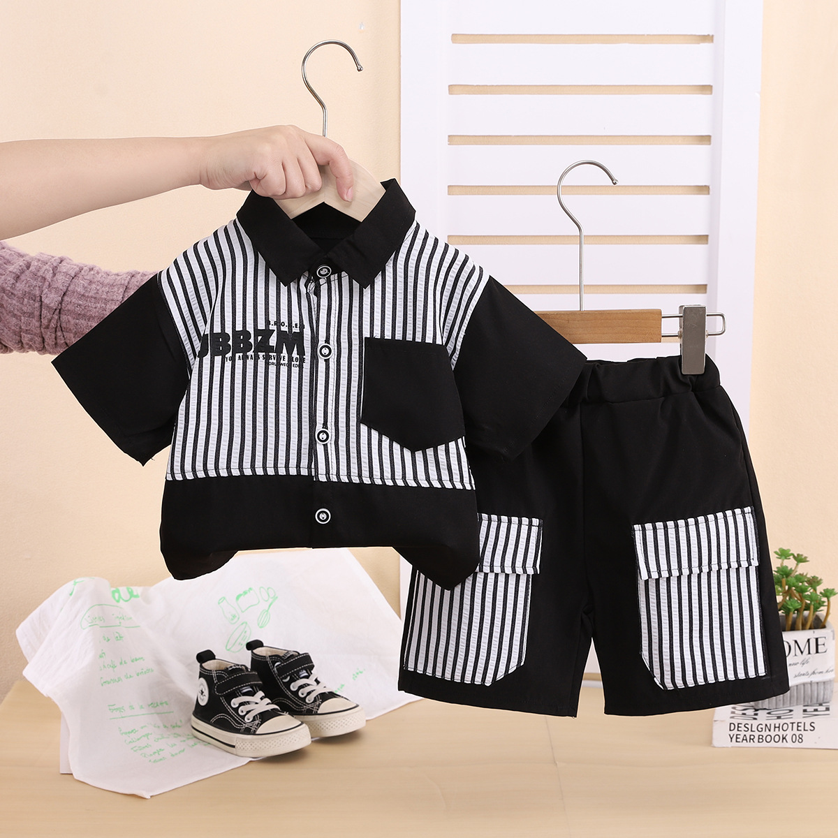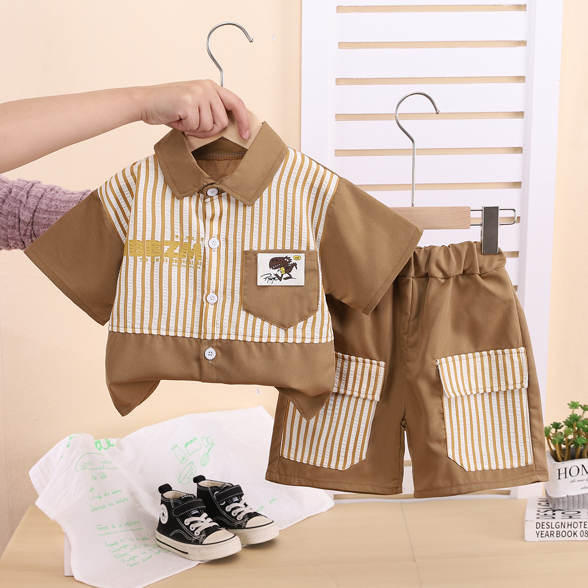 소년 정장 2025 새로운 여름 줄무늬 공룡 반팔 셔츠 투피스 세트 대외 무역 제조 업체스토어 가기