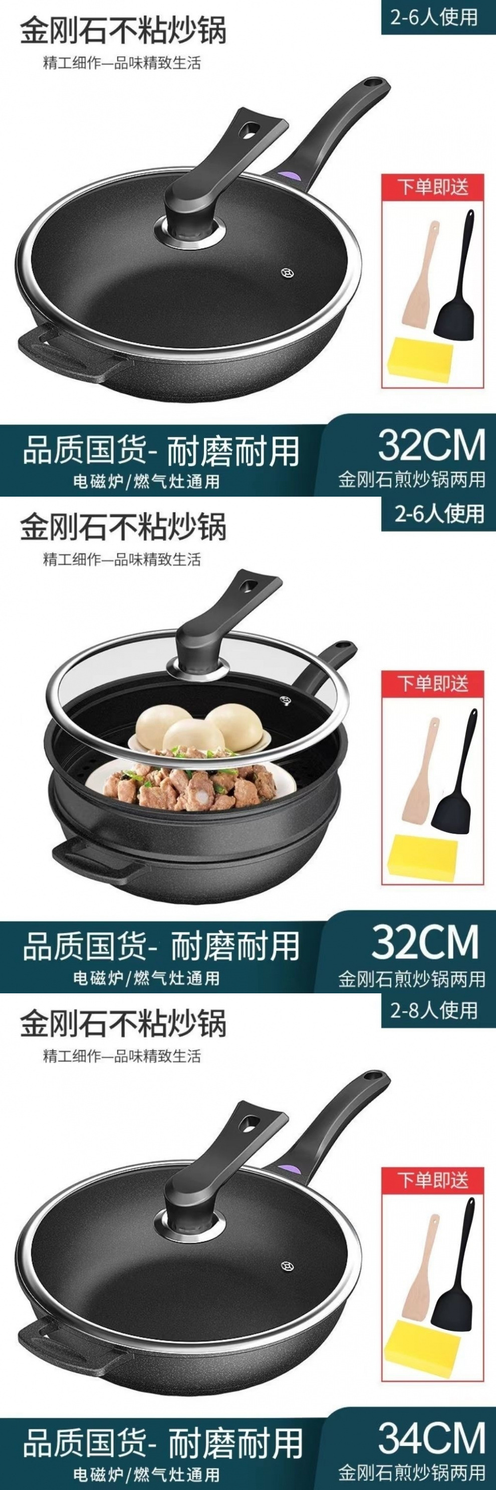 • 뚜껑과 찜통이 포함된 킹콩 메디컬 스톤 논스틱 팬 32CM
