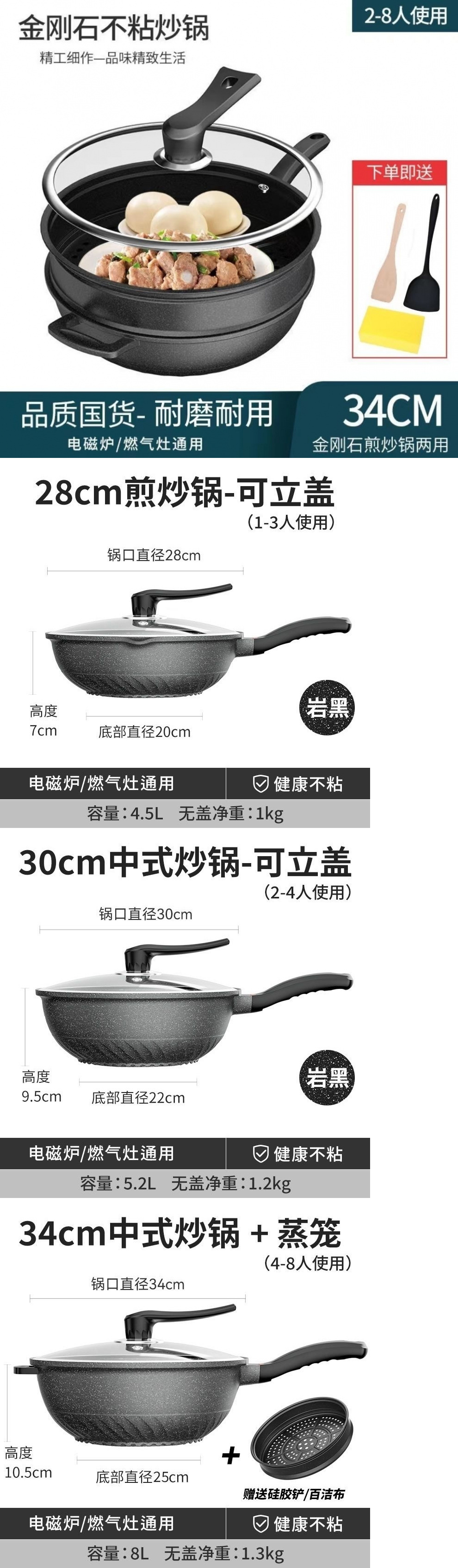 • 뚜껑과 찜통이 포함된 킹콩 메디컬 스톤 논스틱 팬 34CM