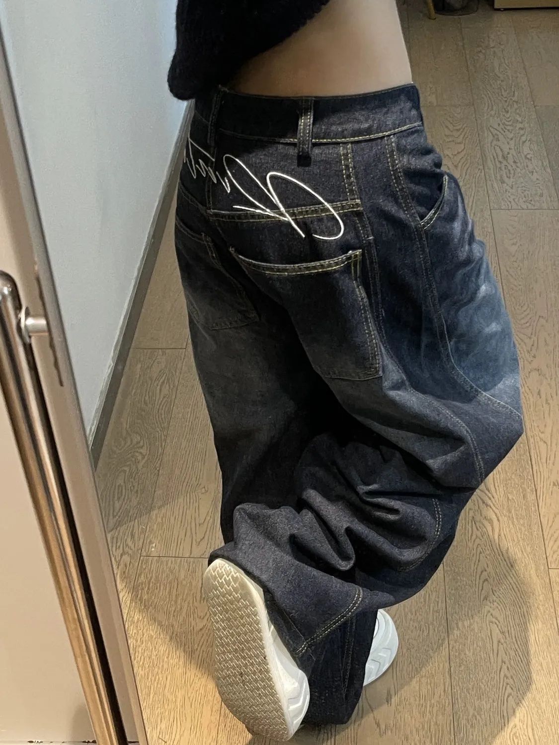 아메리칸 스타일 올 매치 빈티지 오래 된 모양 Machete 청바지 여성의 느슨한 슬리밍 와이드 레그 캐주얼 바지스토어 가기