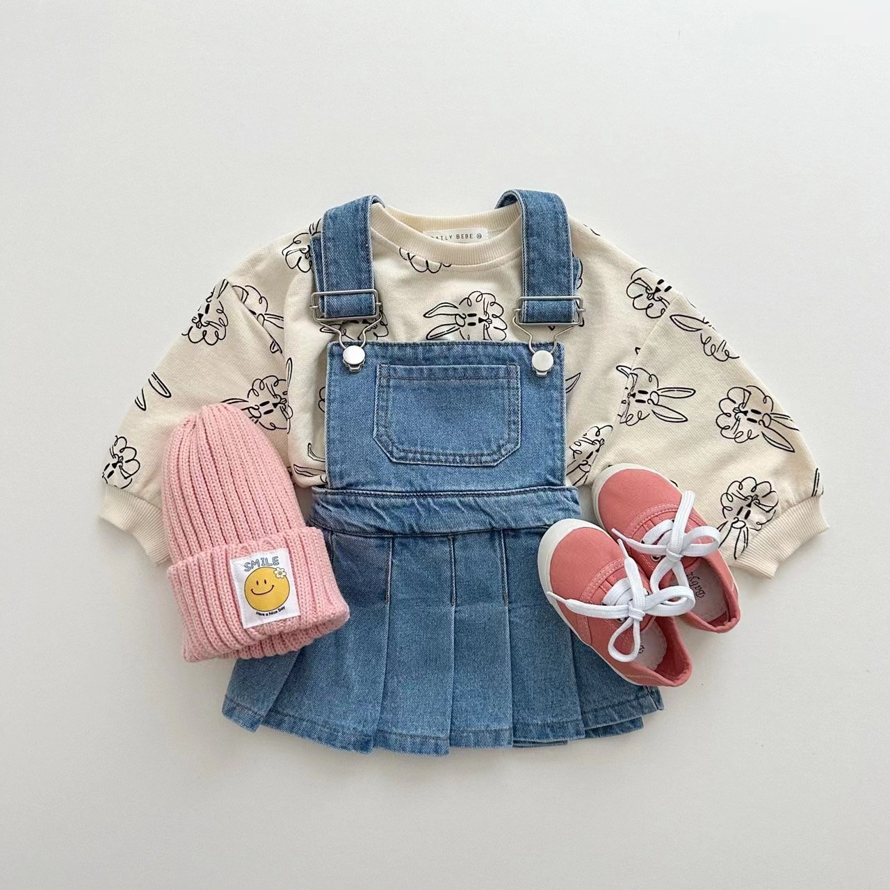 소녀와 아기를 위한 봄 여름 한국 신상 드레스, 한국 스타일 패셔너블한 허리 데님 조끼 스커트, 플리츠 스커트
