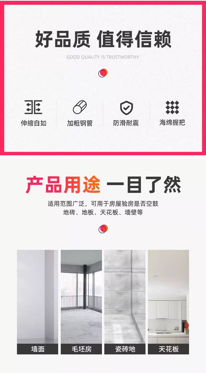 [집 검사 도구] 무료 배송 타일 두껍고 두꺼운 텔레스코픽 특수 수락 빈 드럼 테스트를 위한 빈 드럼 해머 세트스토어 가기