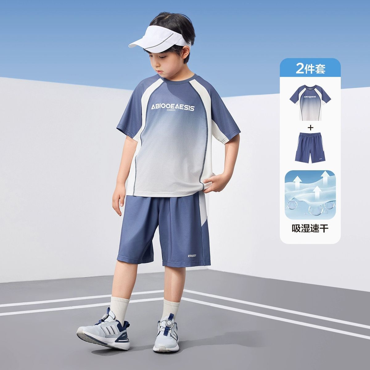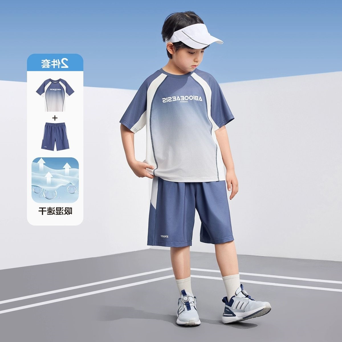남아 및 아동 스포츠 슈트, 아동용 반팔 속건 슈트, 여름 8계절 신상 여름 투피스 세트 재고 있음
