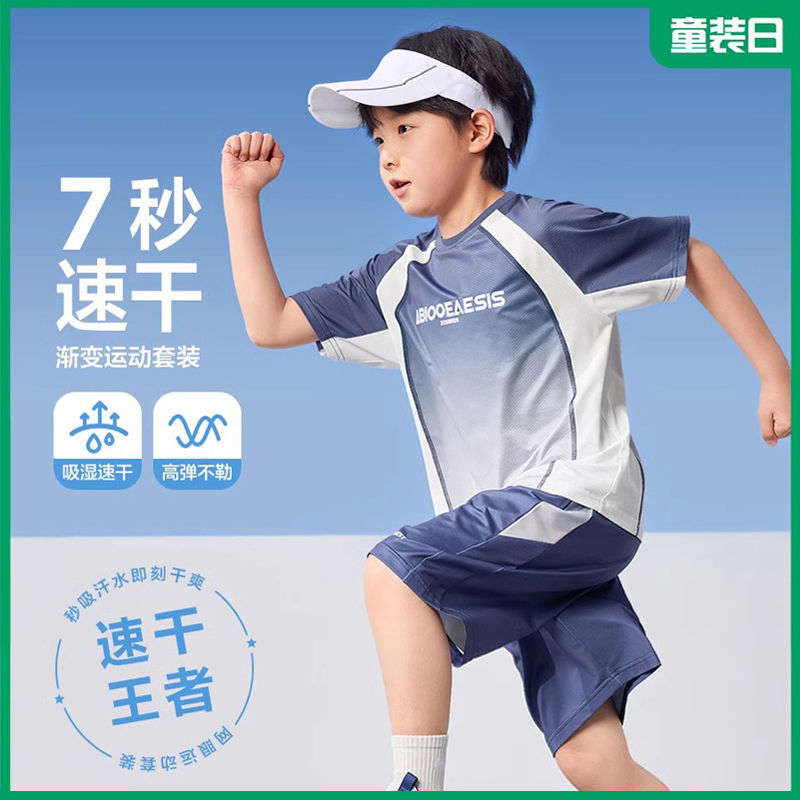 남아 및 아동 스포츠 슈트, 아동용 반팔 속건 슈트, 여름 8계절 신상 여름 투피스 세트 재고 있음스토어 가기