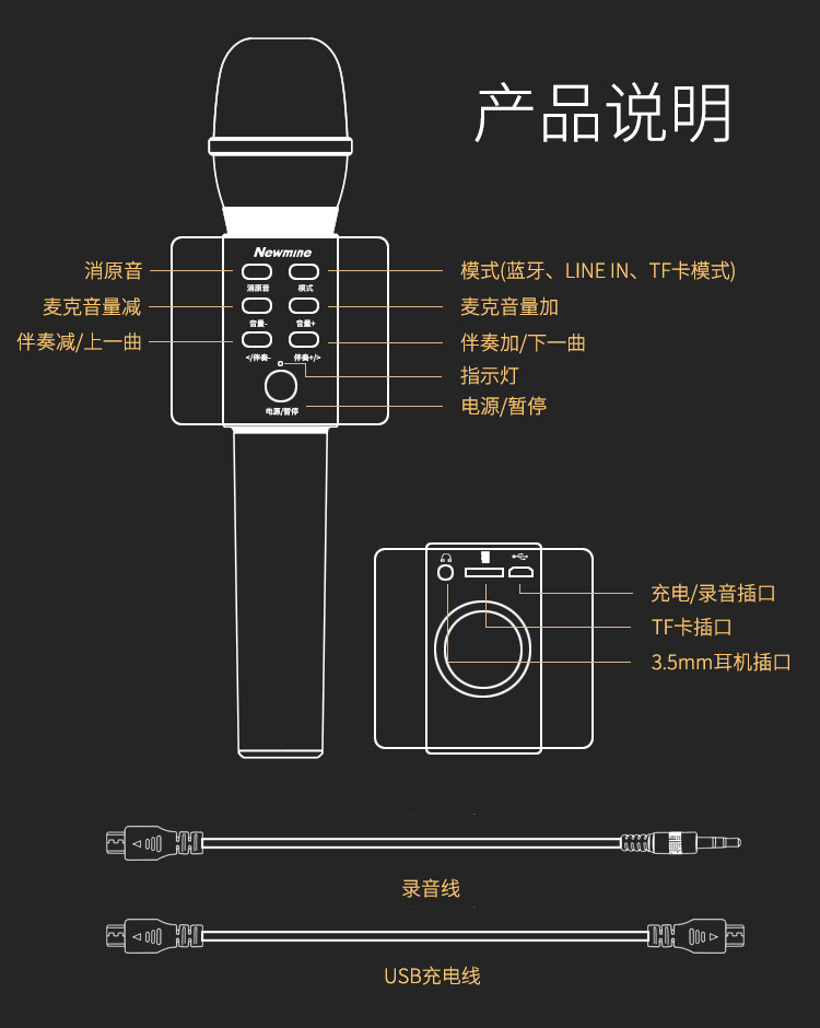 뉴먼 마이크 오디오 일체형 마이크 노래방 신스틱식 노래방 가정용 MC10 MC10