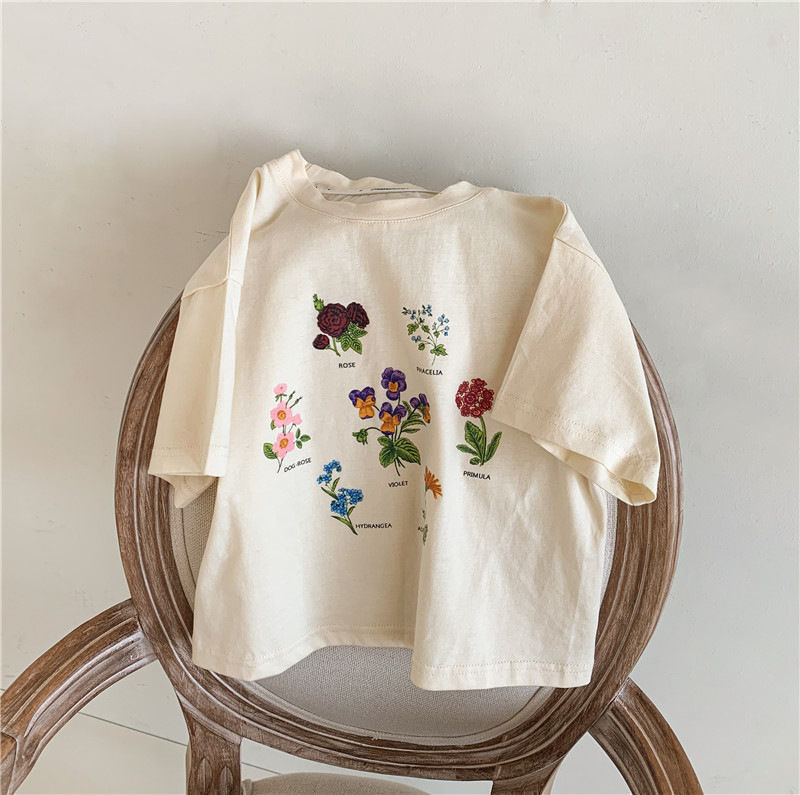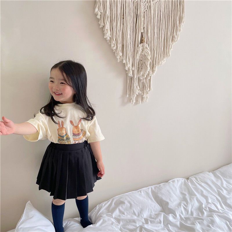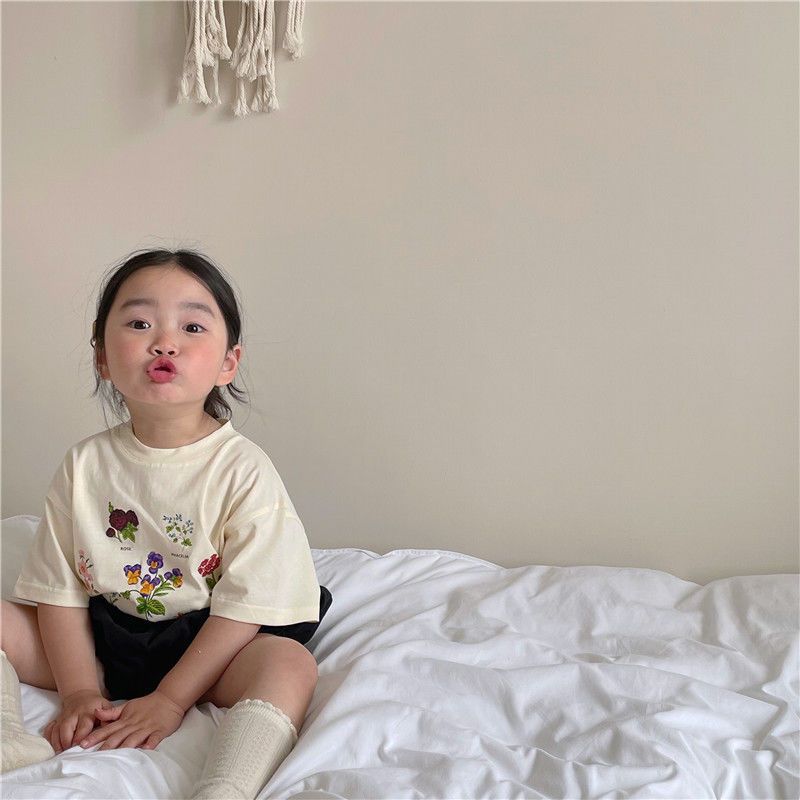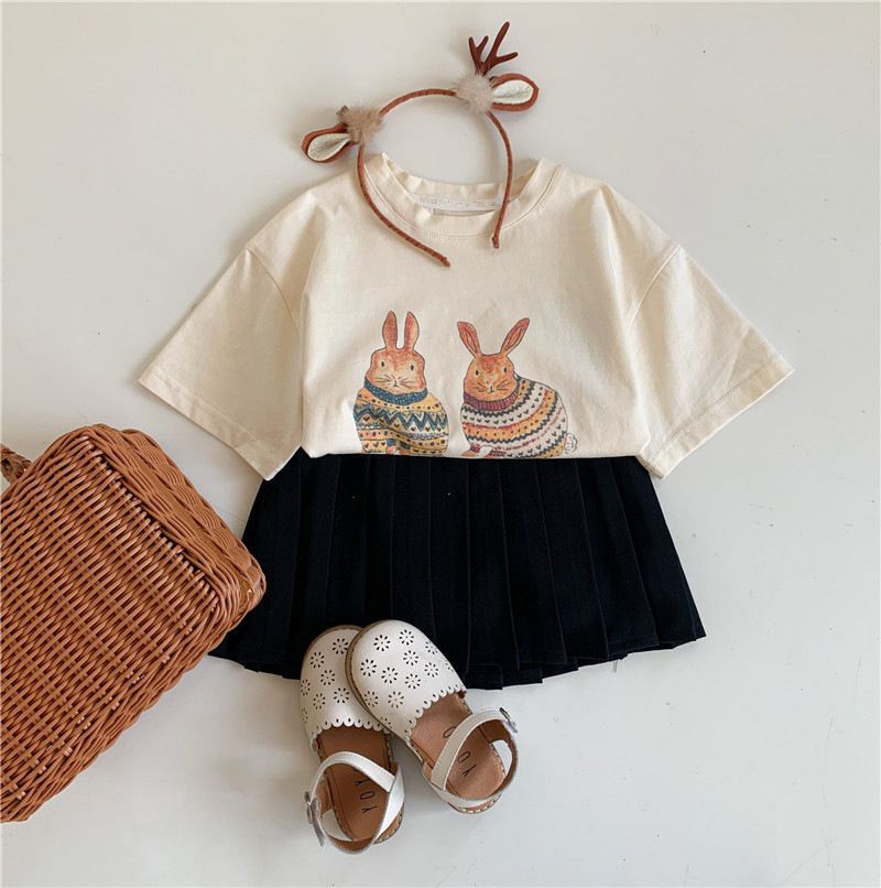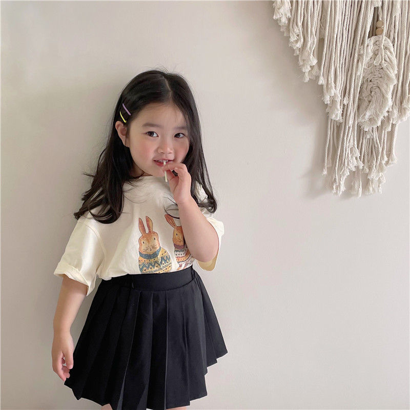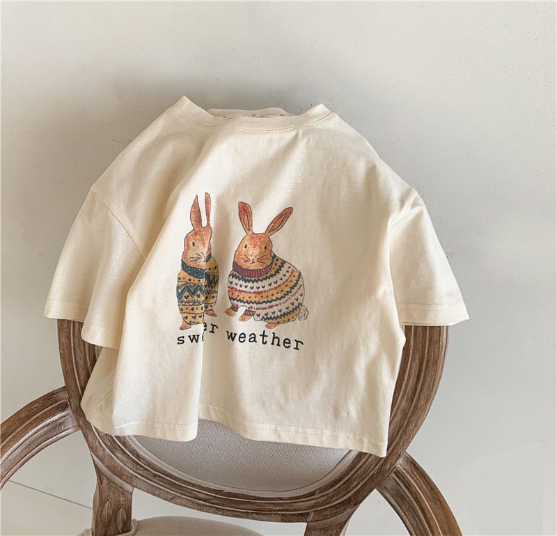 한국 아동복 여름 소년과 소녀 티셔츠 토끼 꽃 인쇄 아기 반팔 귀여운 모리 탑스토어 가기