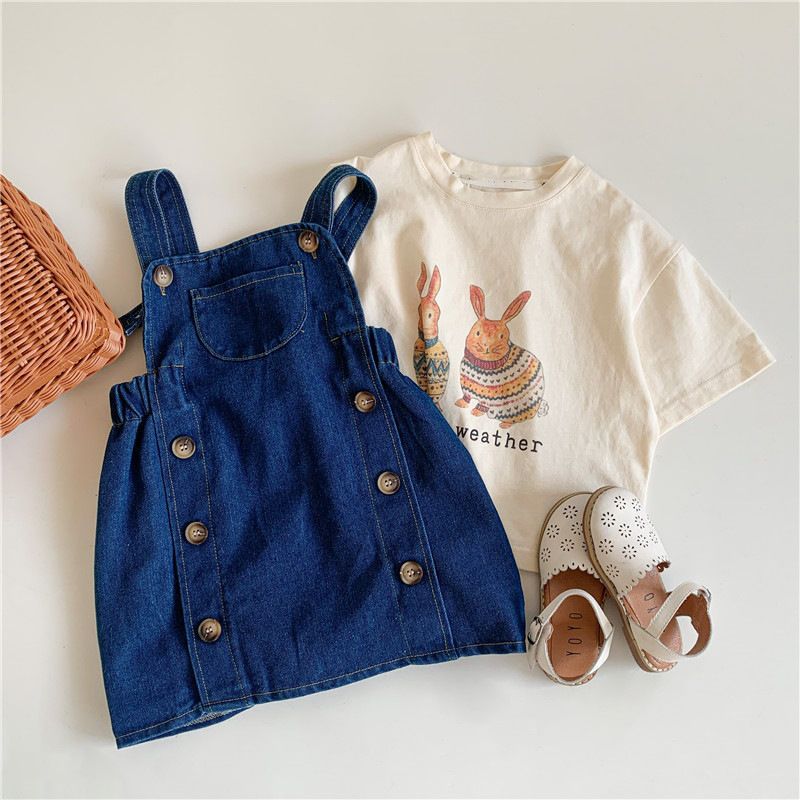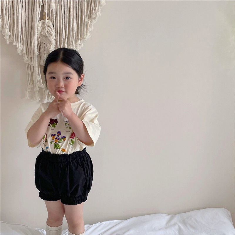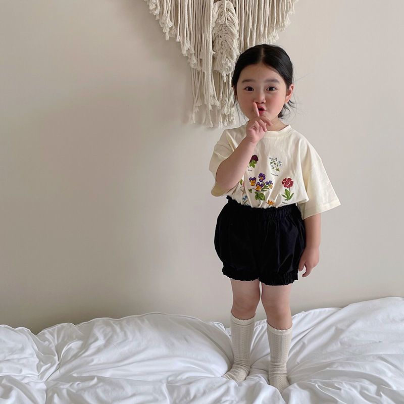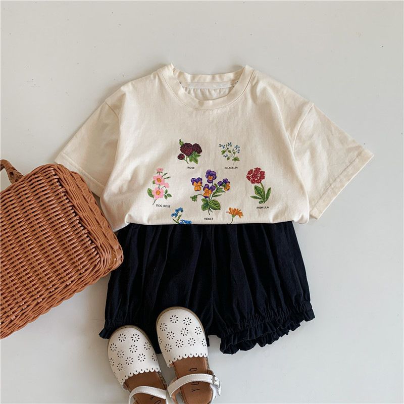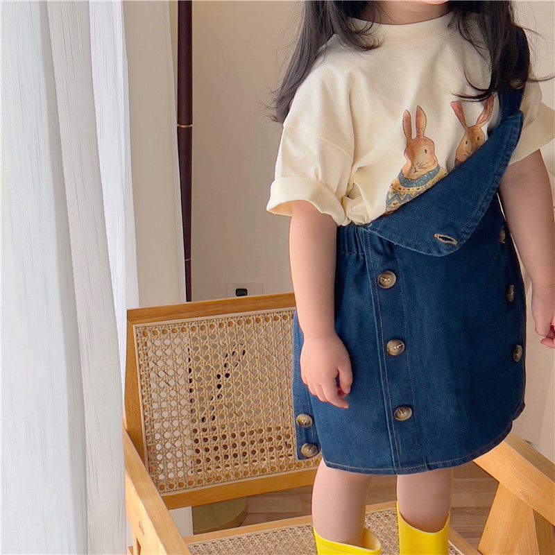 한국 아동복 여름 소년과 소녀 티셔츠 토끼 꽃 인쇄 아기 반팔 귀여운 모리 탑스토어 가기
