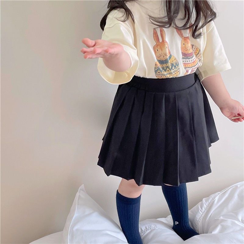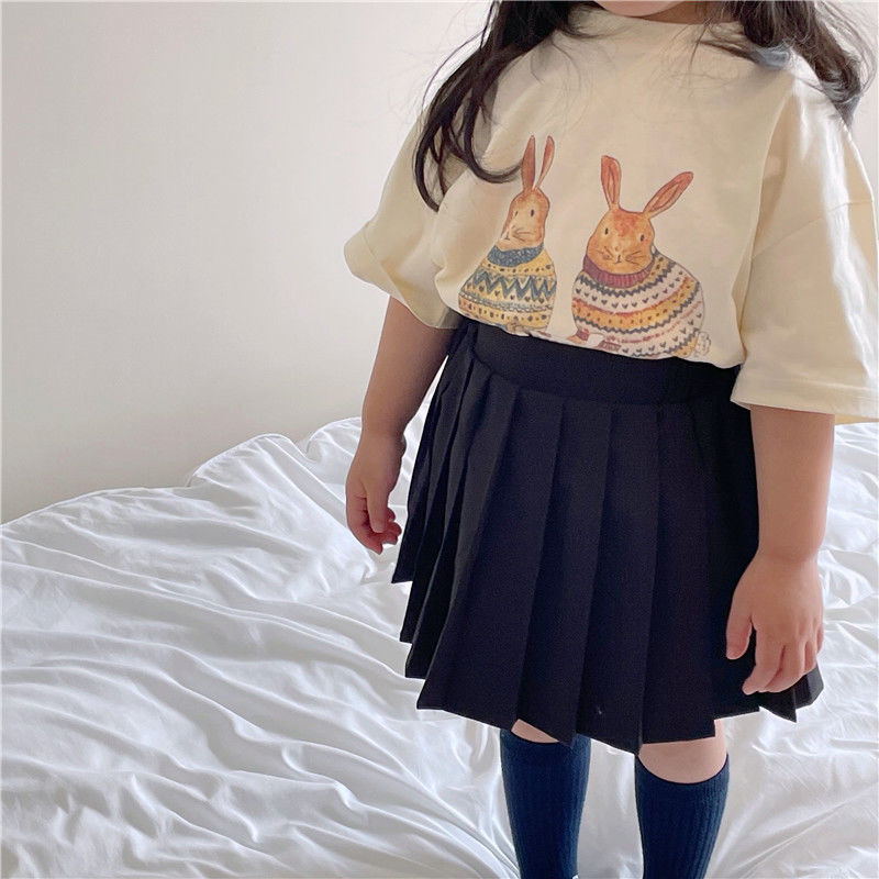한국 아동복 여름 소년과 소녀 티셔츠 토끼 꽃 인쇄 아기 반팔 귀여운 모리 탑