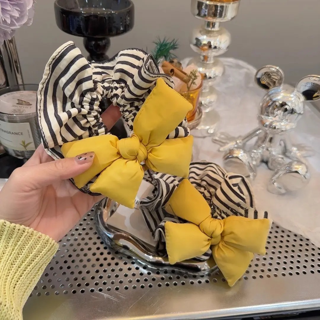 동대문 새 레몬 노란색 활 대형 장내 헤어 링 올매치 스트라이프 귀여운 소녀의 하트 타이 헤어 로프 헤어 액세서리
