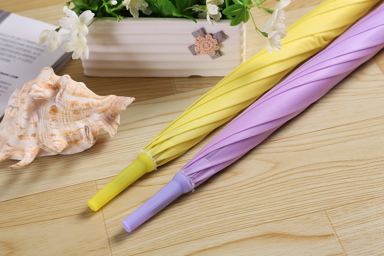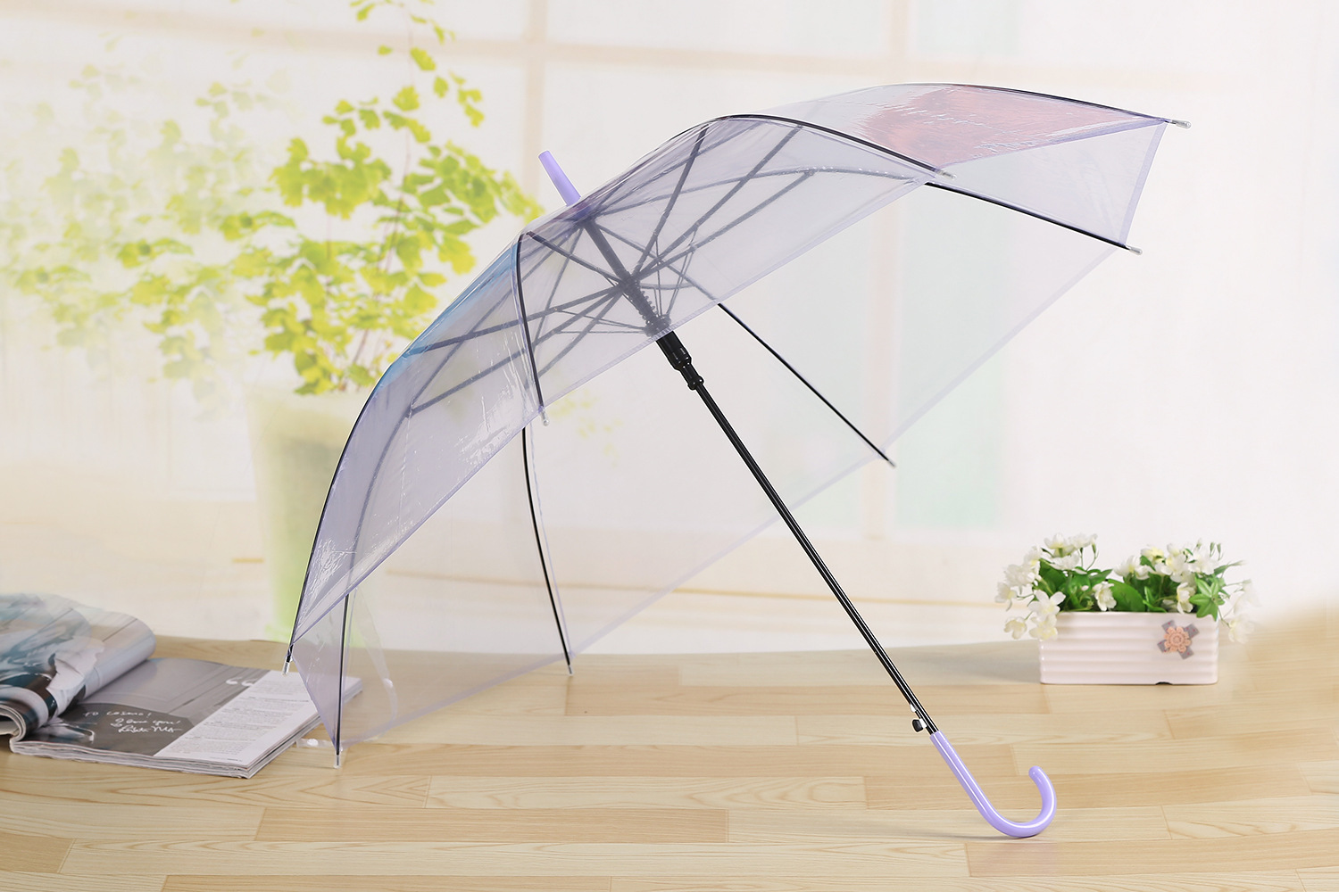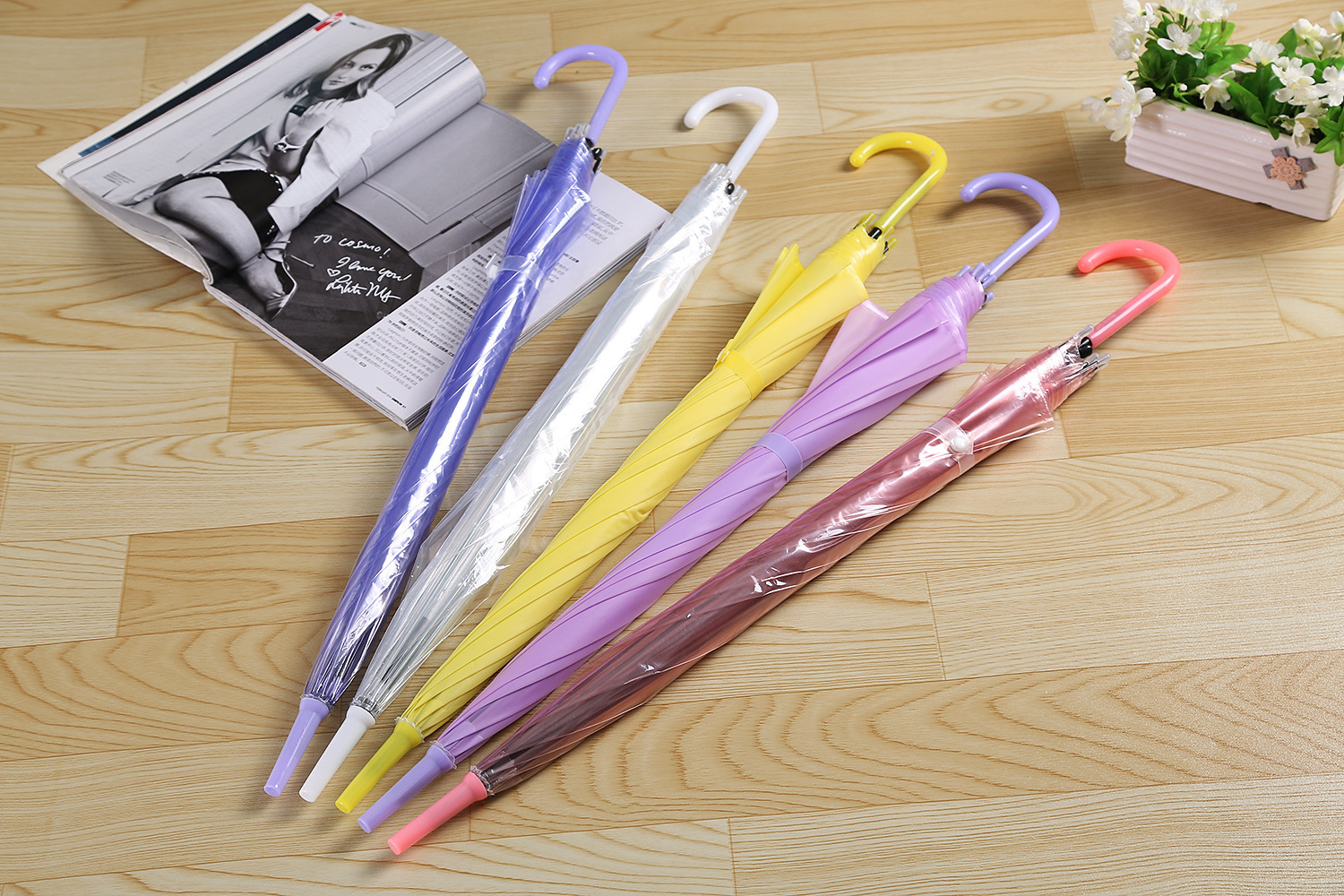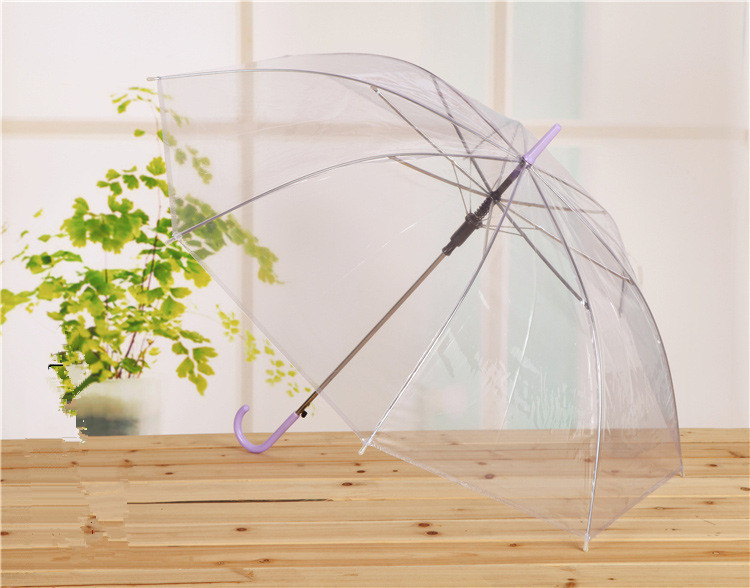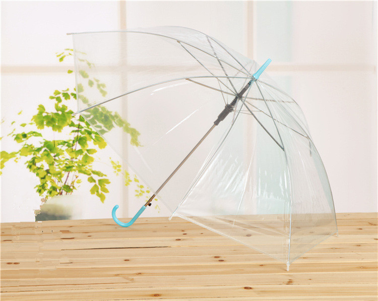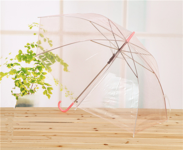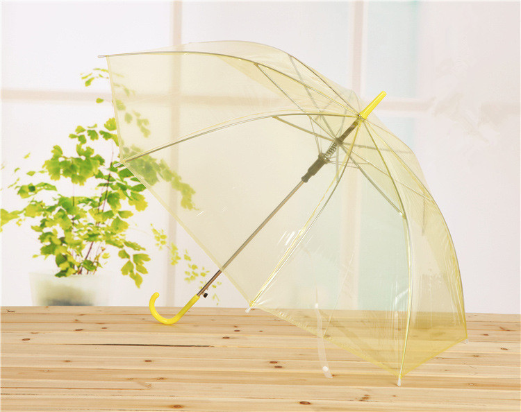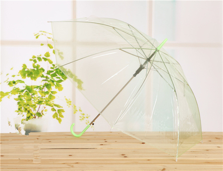 창조적 인 작은 신선한 긴 손잡이 투명 우산 컬러 스트레이트 로드 자동 도매 우산 로고 광고 선물 우산