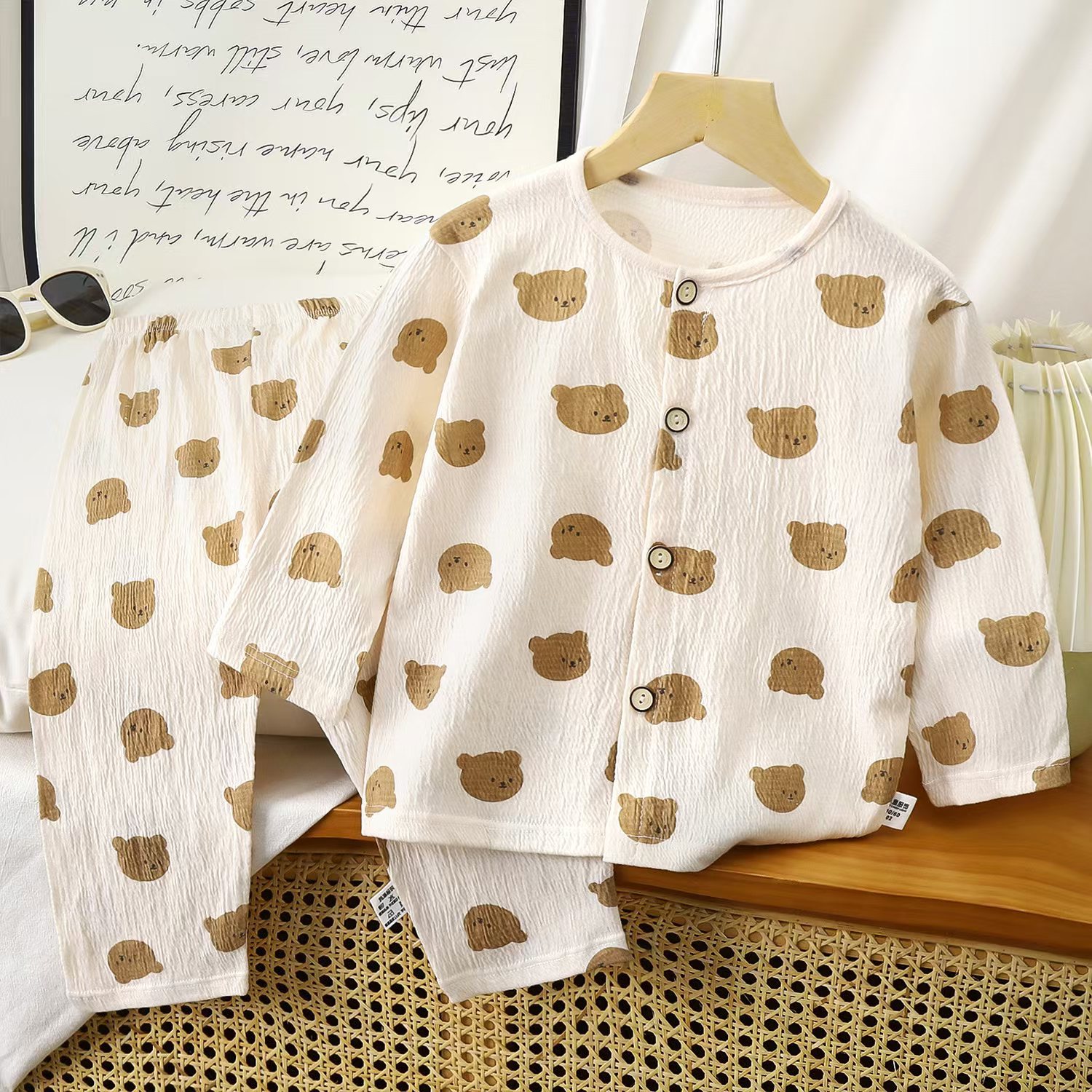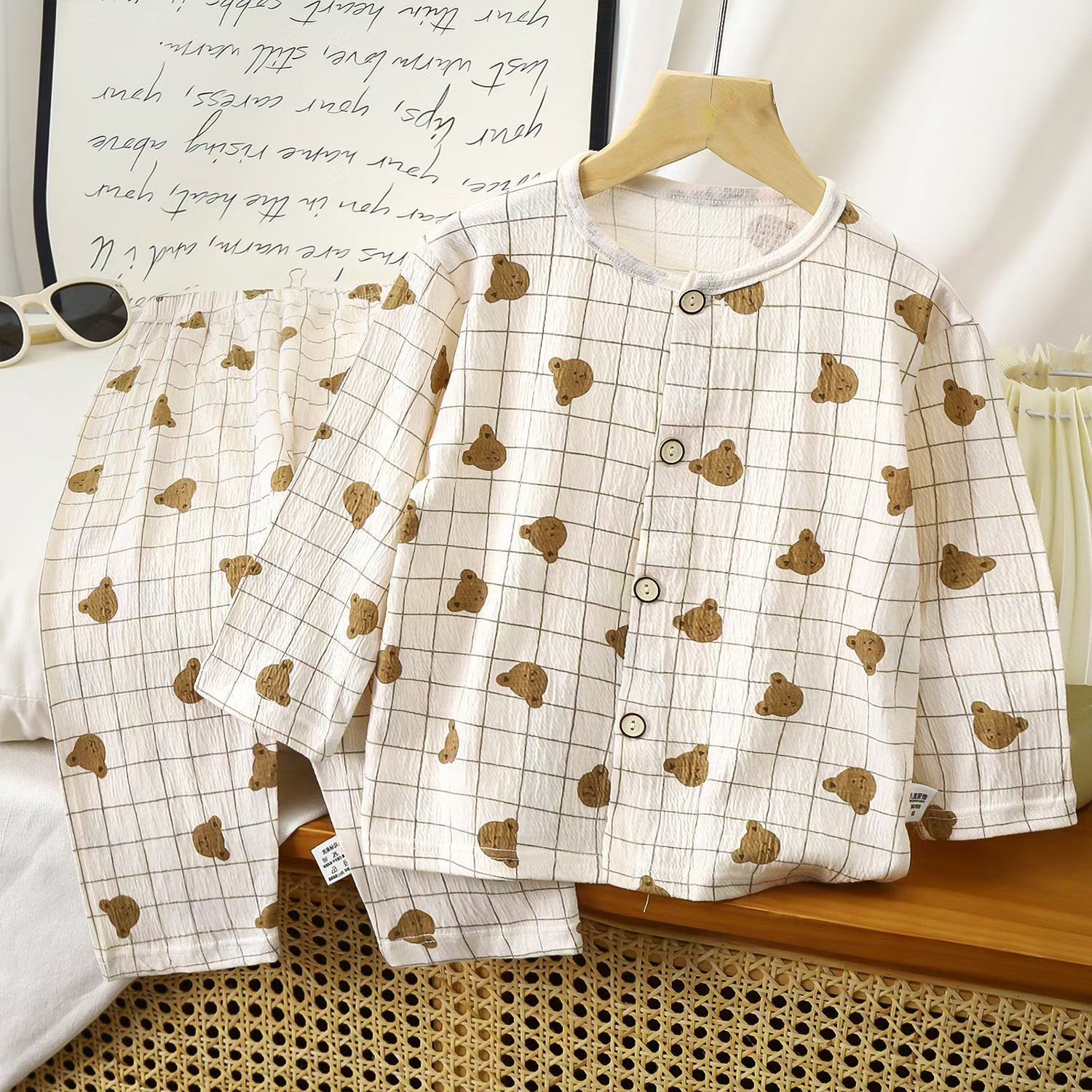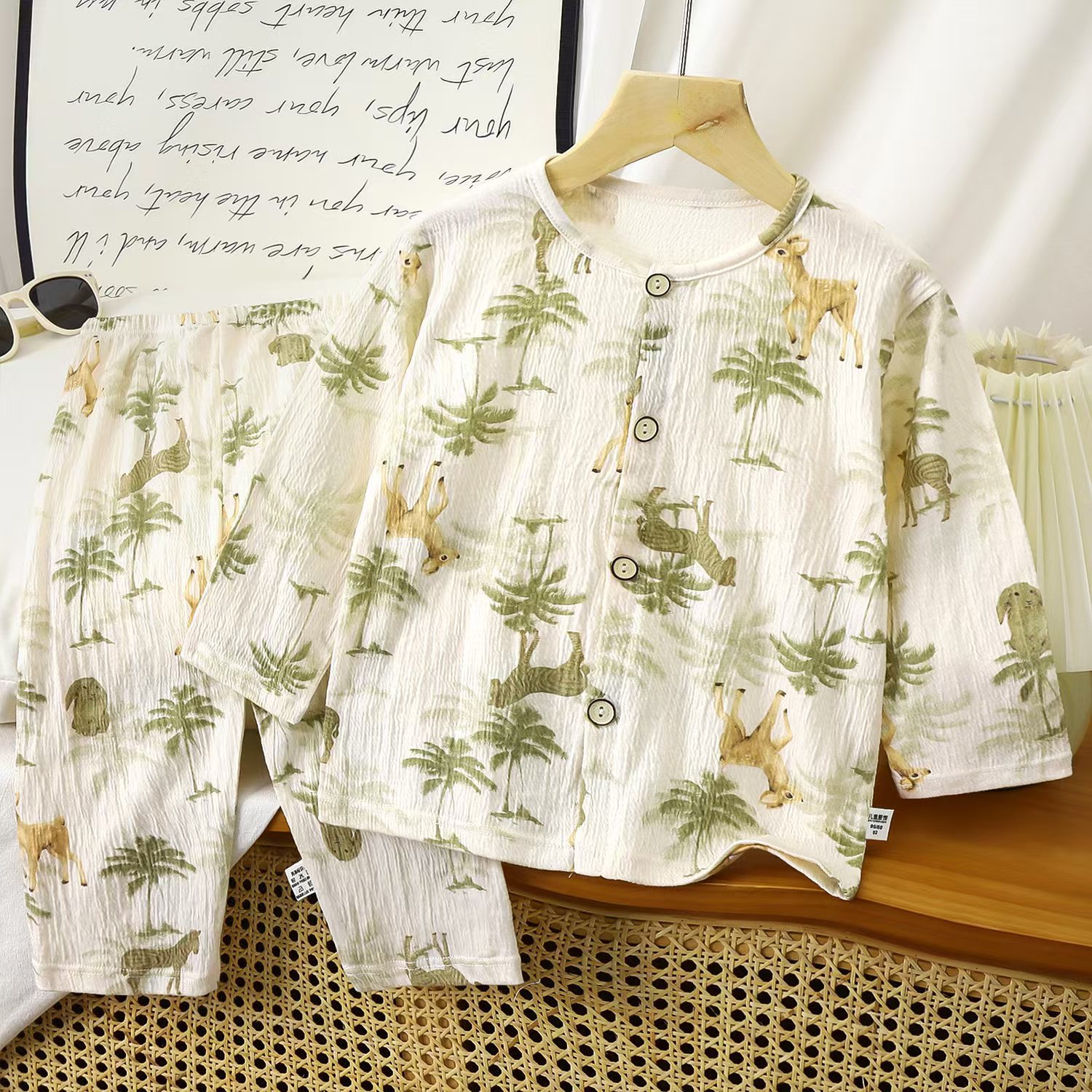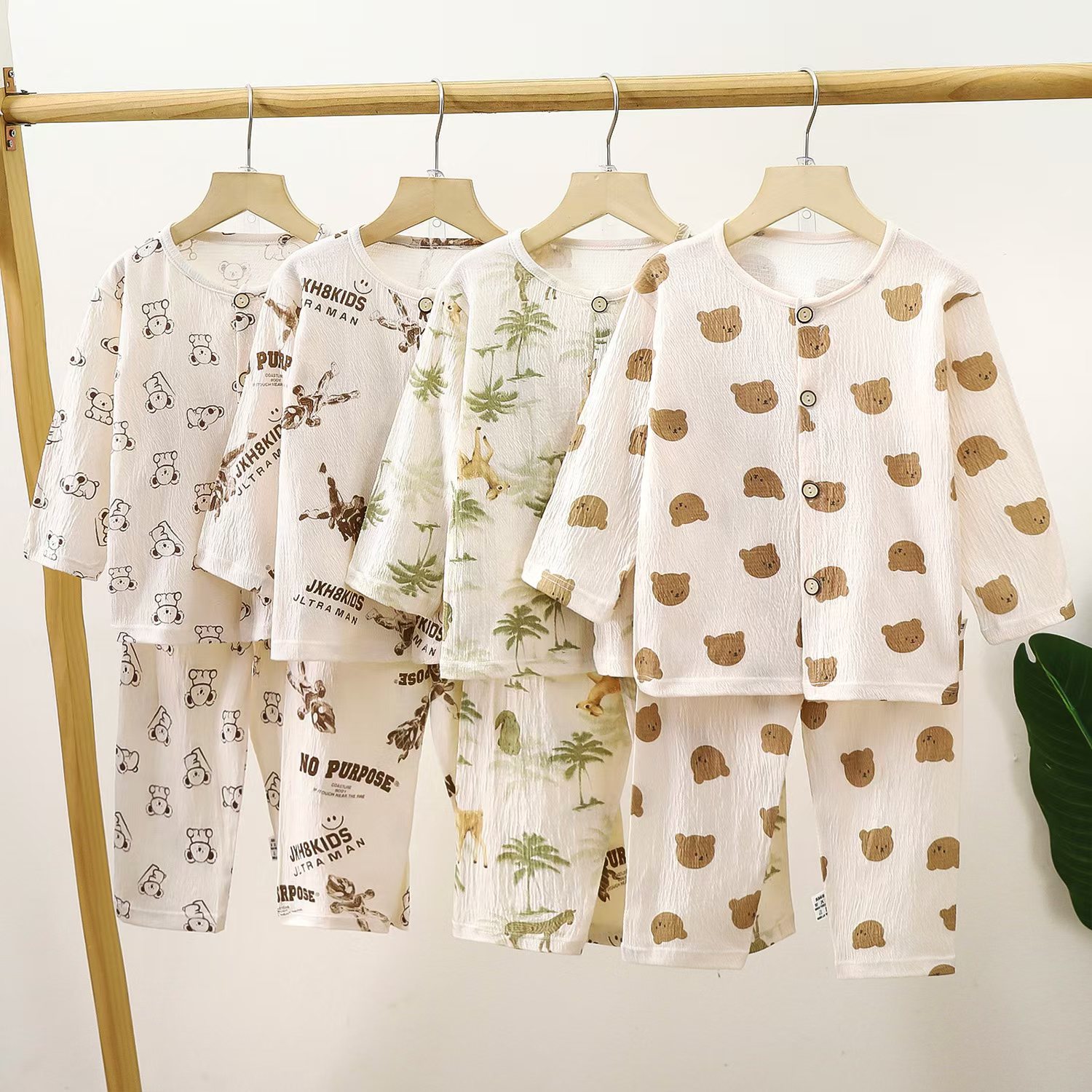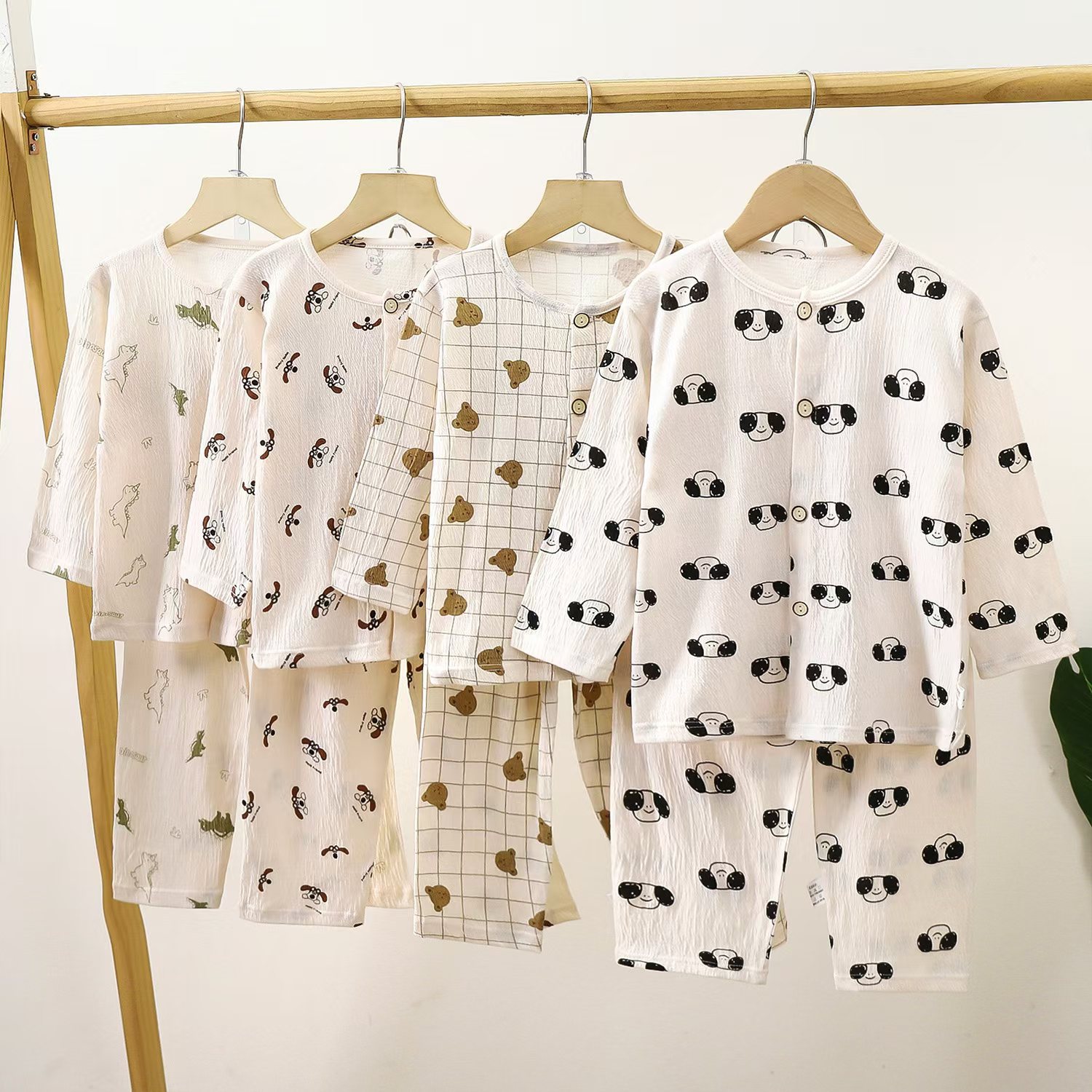 니트 주름진 가정복 세트, 아동용 레이스 면 잠옷 세트, 여름 통기성 속옷 2종스토어 가기