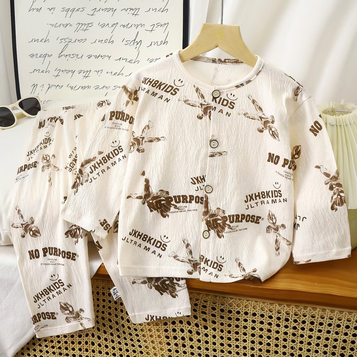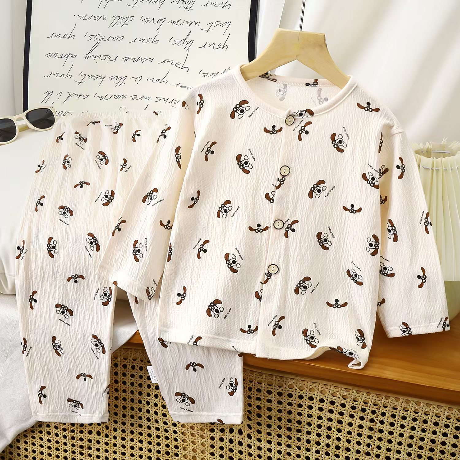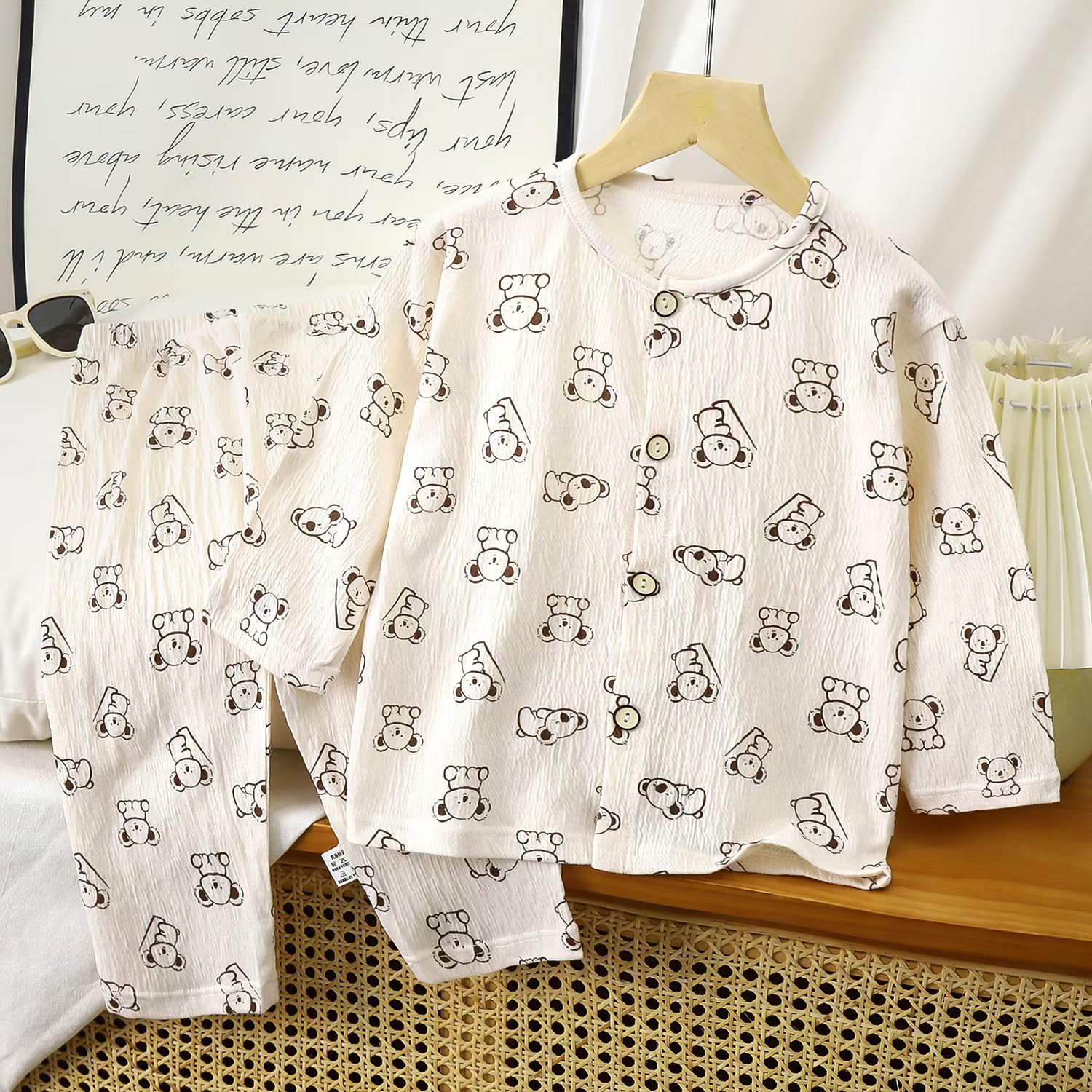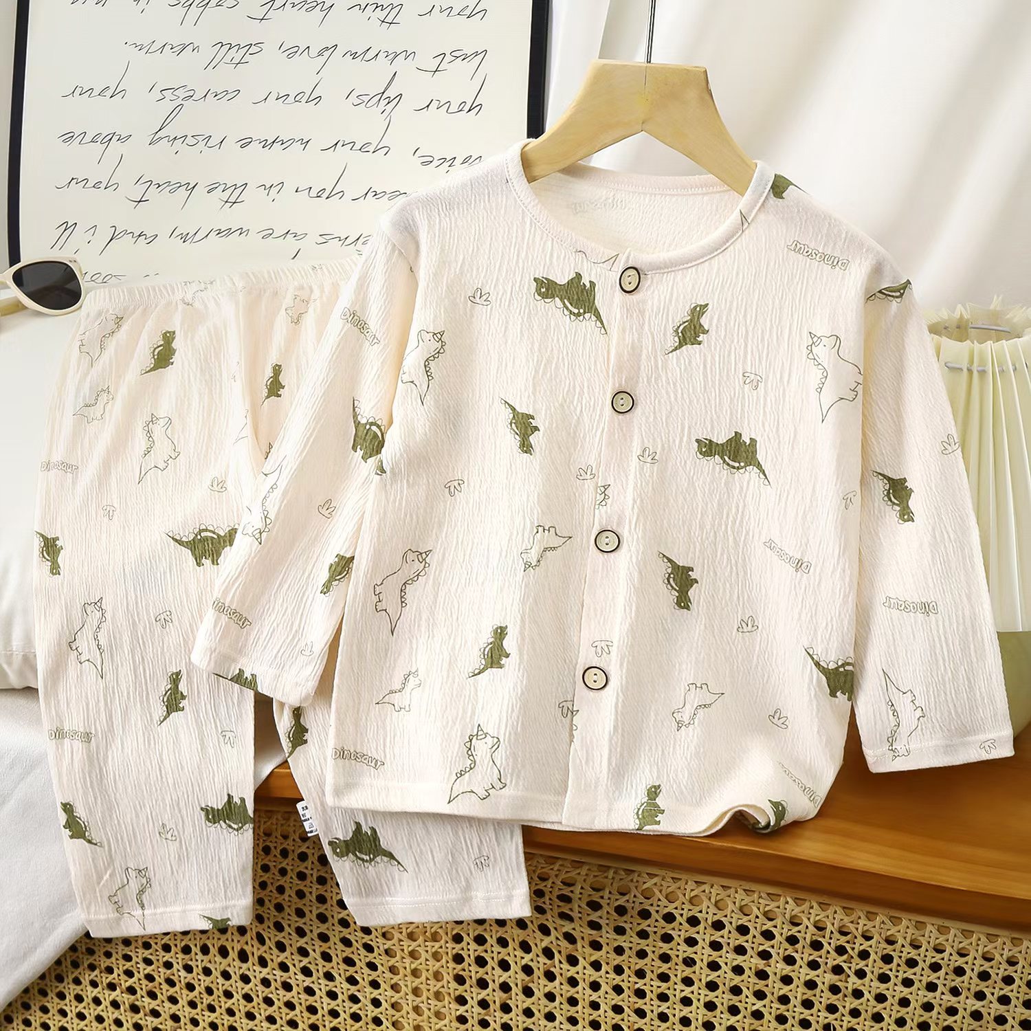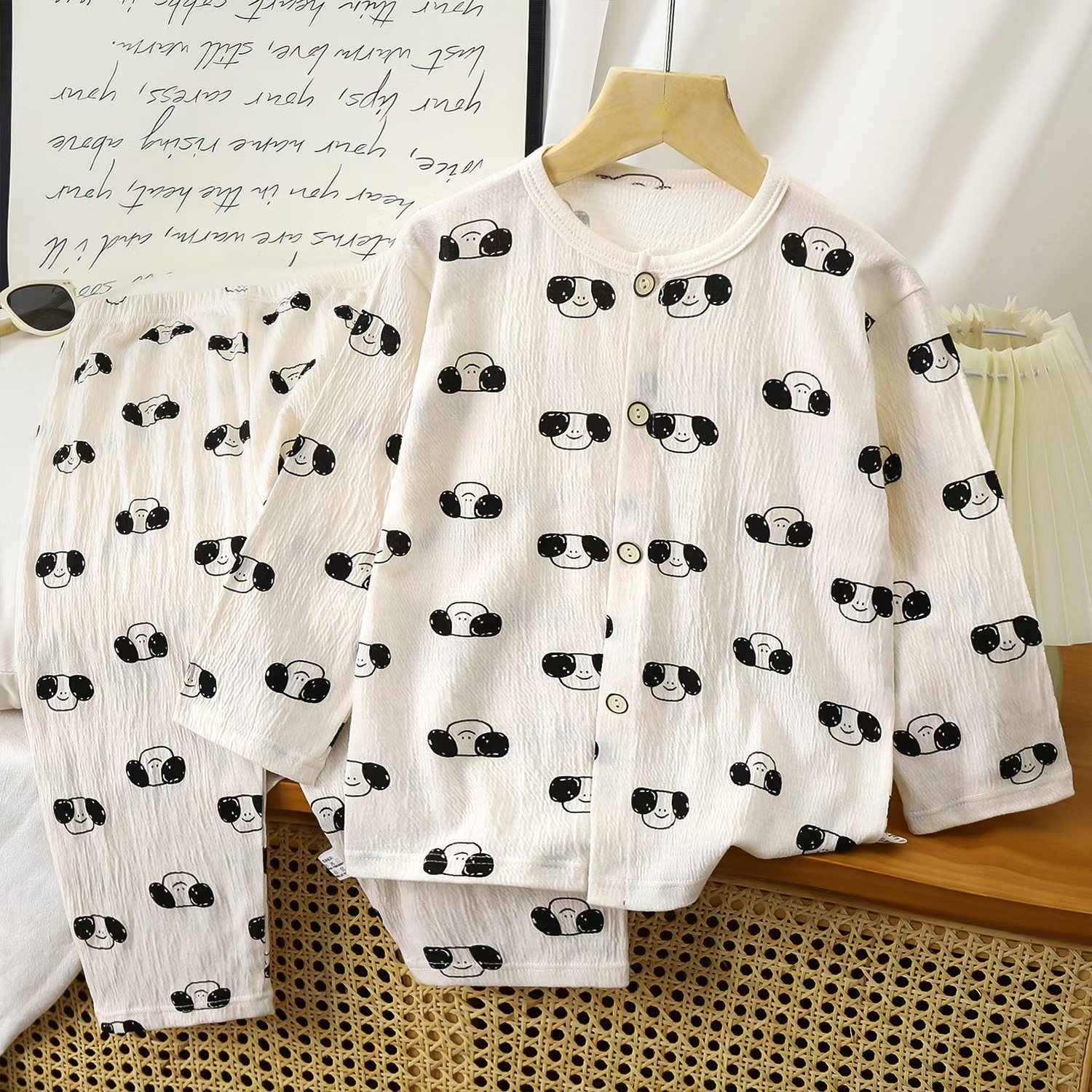 니트 주름진 가정복 세트, 아동용 레이스 면 잠옷 세트, 여름 통기성 속옷 2종스토어 가기