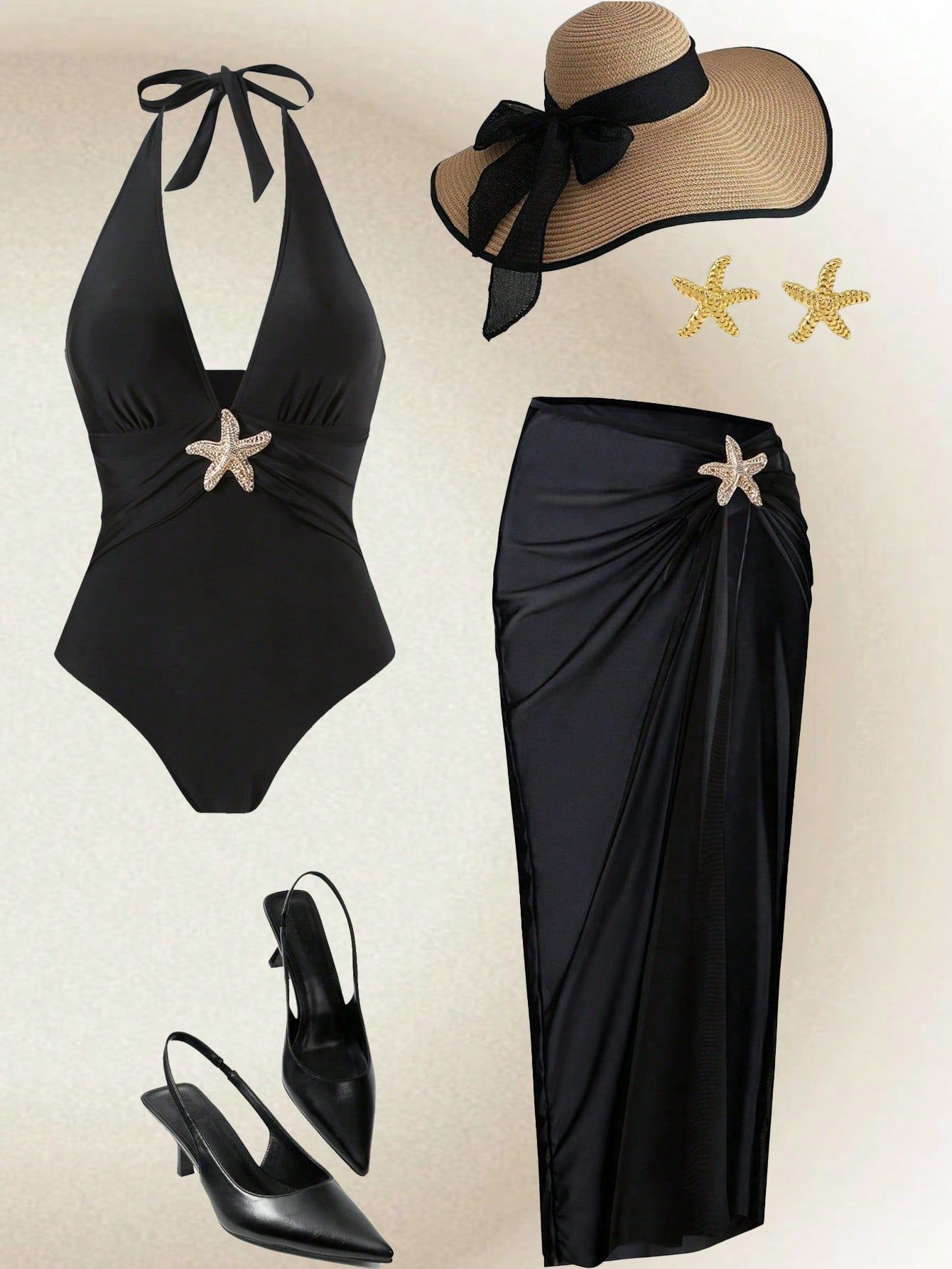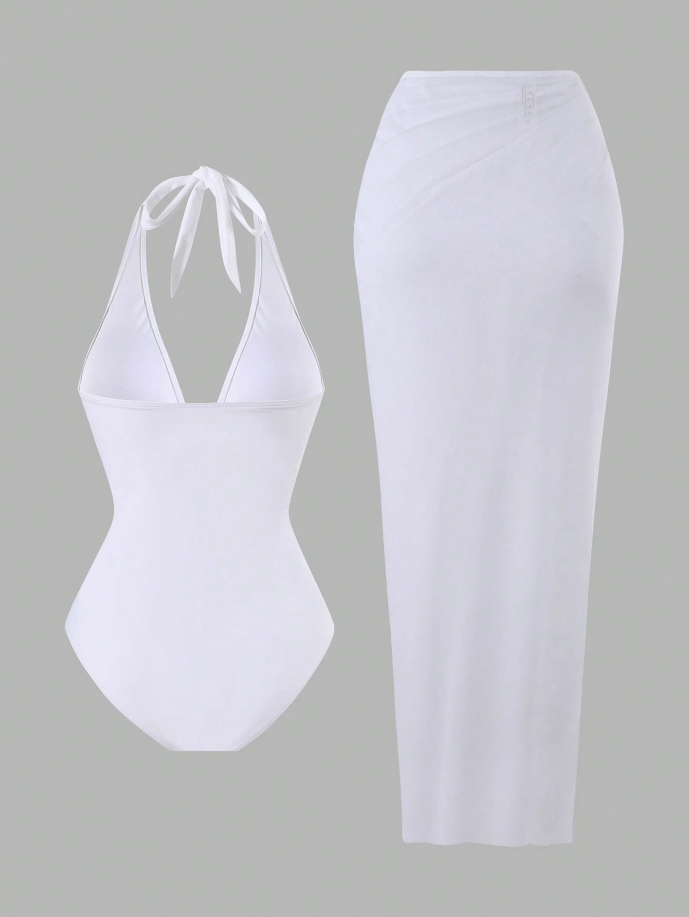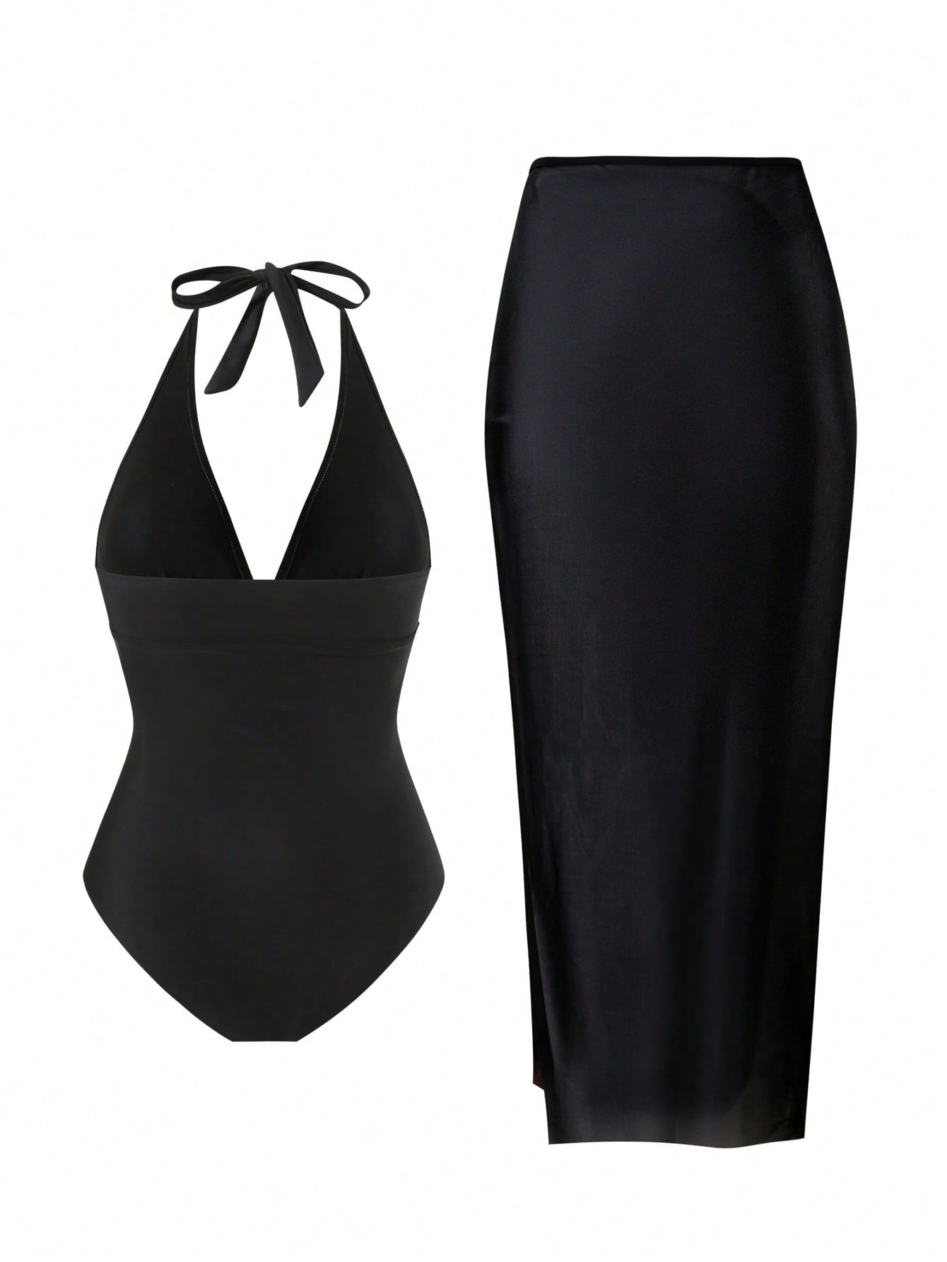 Spot 대외 무역 AliExpress 국경 간 섹시한 해변 롱 스커트 딥 V 원피스 수영복 투피스 세트 2025 핫 스타일 수영복