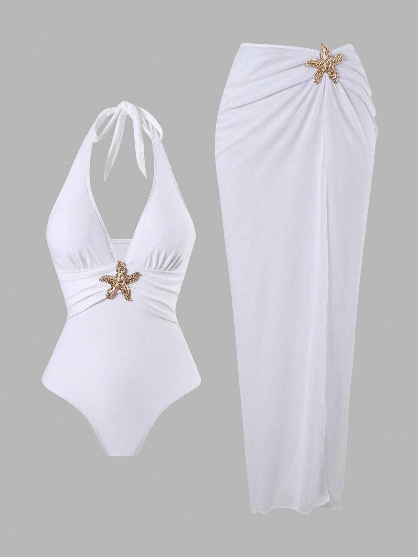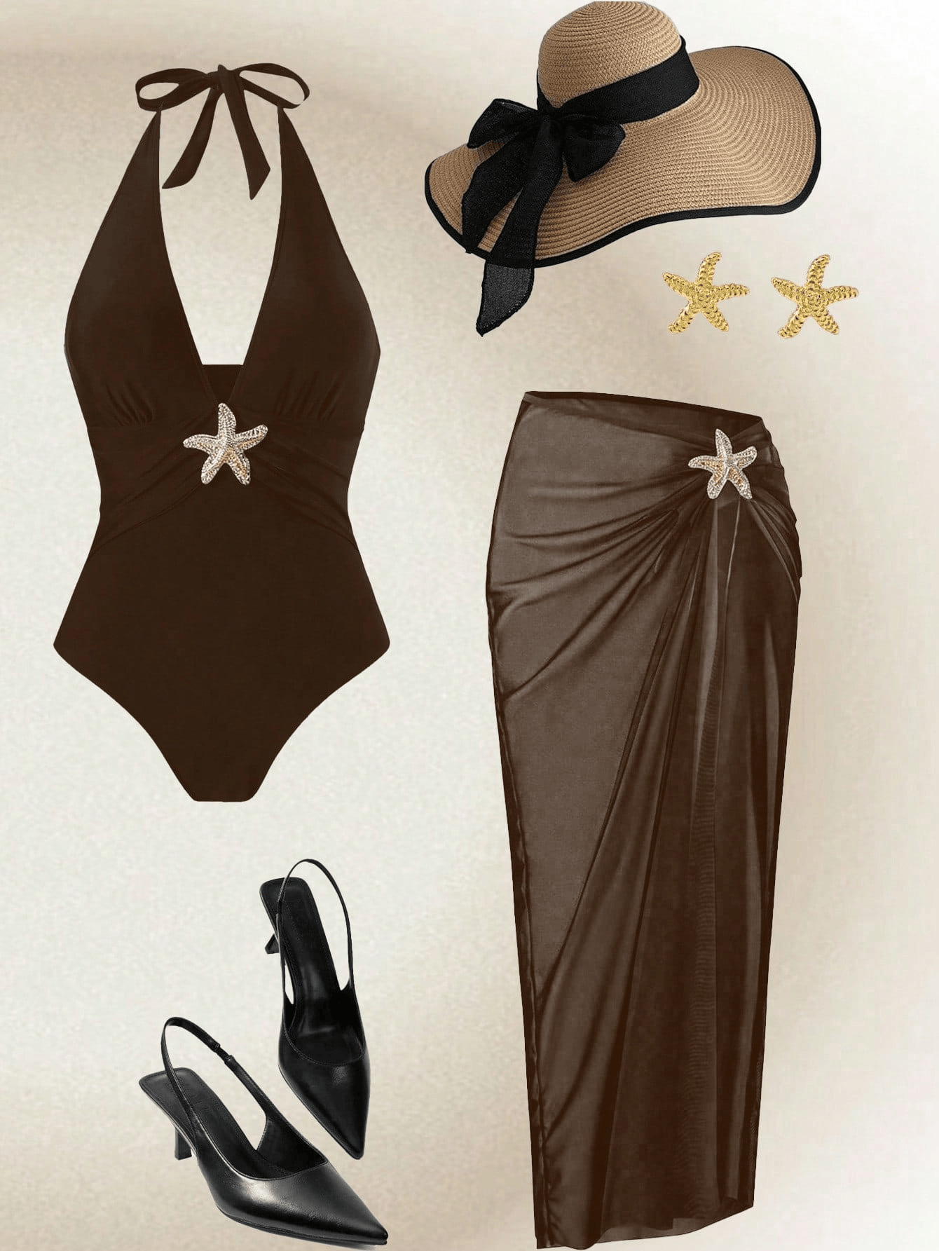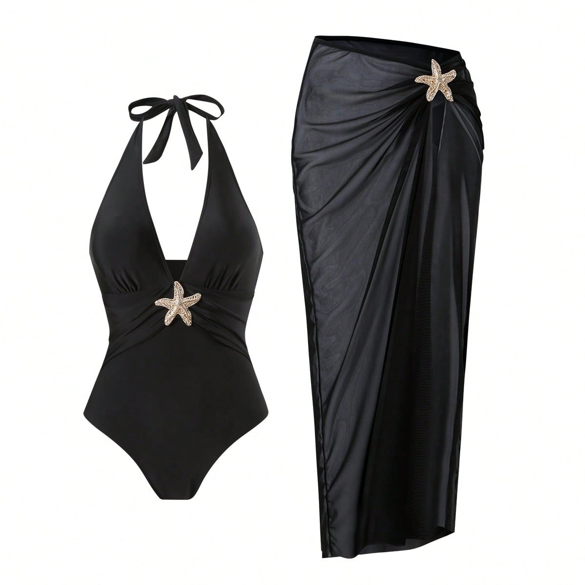 Spot 대외 무역 AliExpress 국경 간 섹시한 해변 롱 스커트 딥 V 원피스 수영복 투피스 세트 2025 핫 스타일 수영복