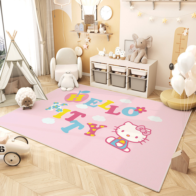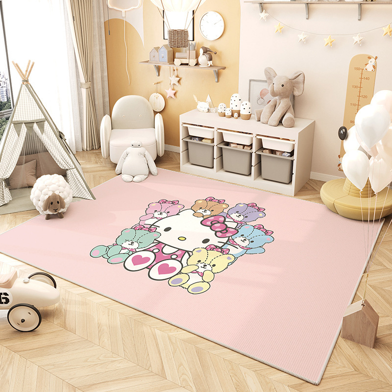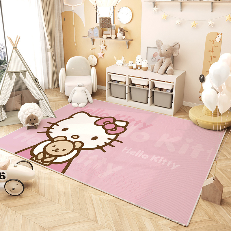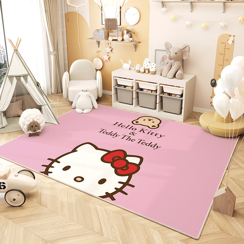 만화 거실 카펫 귀여운 헬로 키티 미끄럼 방지 크리스탈 벨벳 바닥 매트 현관 흡수 바닥 매트 도매스토어 가기