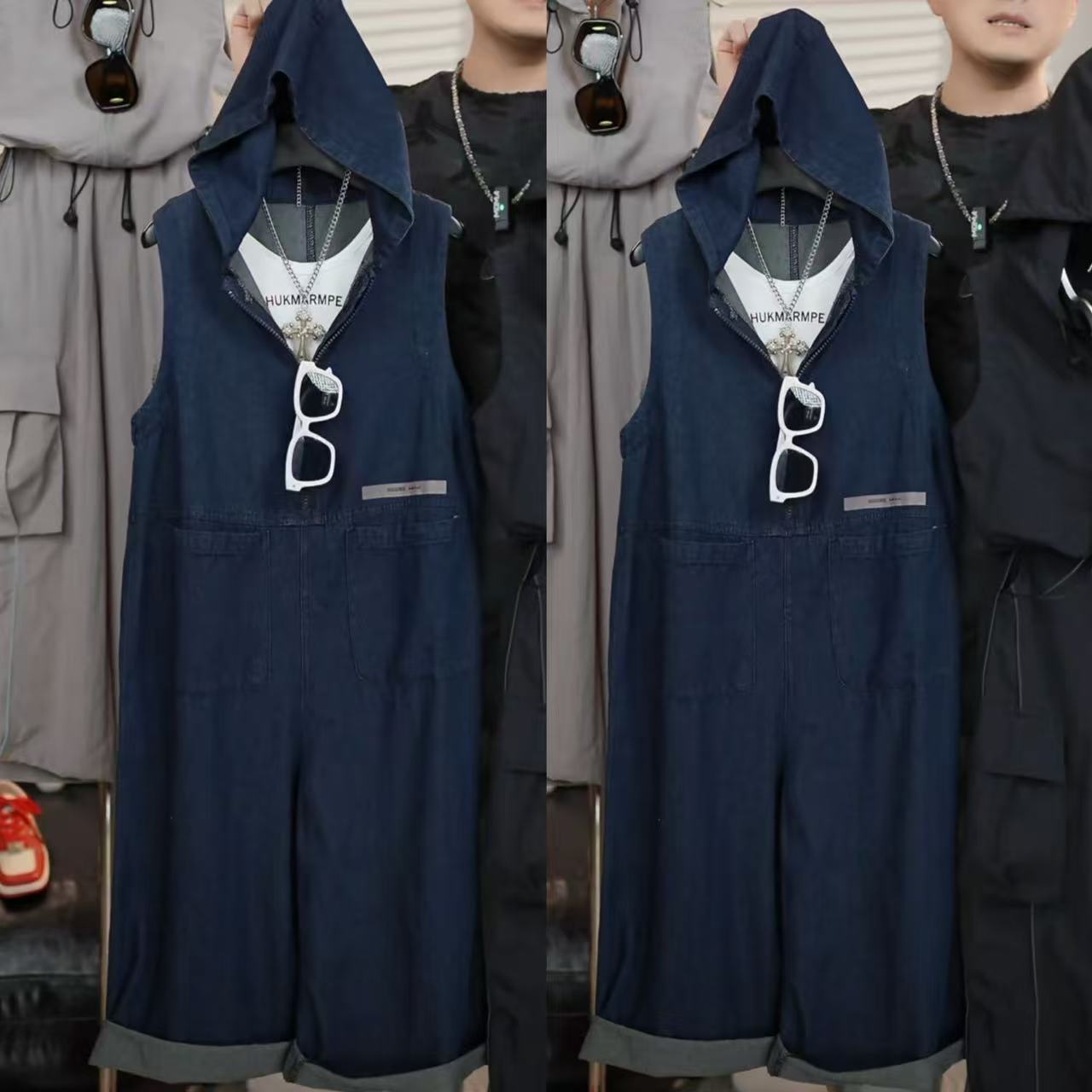 • 흰색 조끼 + 민소매 조끼 점프수트
