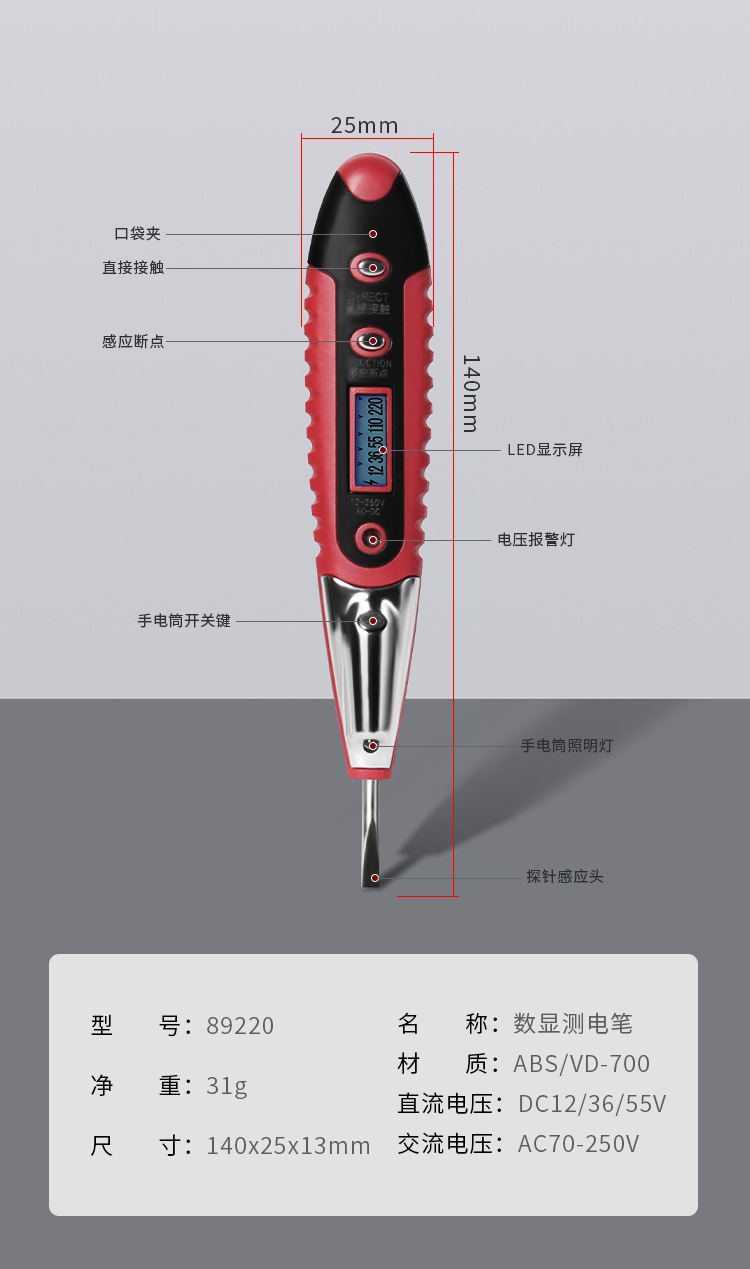 • 89220 (빨간색과 검은색 디지털 디스플레이 테스트 펜 + 카드 포장)