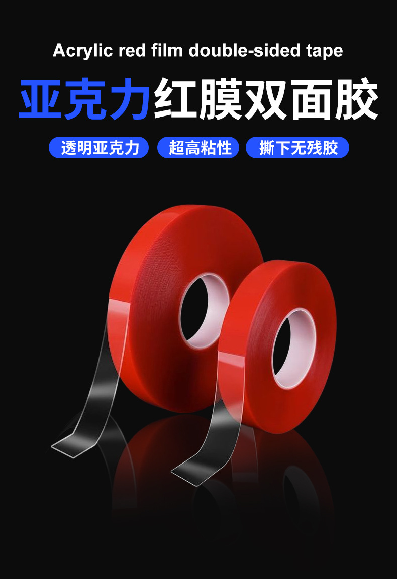 재고 투명한 세척 가능한 강한 빨간 필름 아크릴 양면 접착 방수 온도 저항 높은 접착 나노 양면 접착제