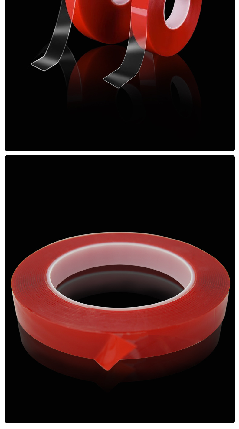 재고 투명한 세척 가능한 강한 빨간 필름 아크릴 양면 접착 방수 온도 저항 높은 접착 나노 양면 접착제스토어 가기