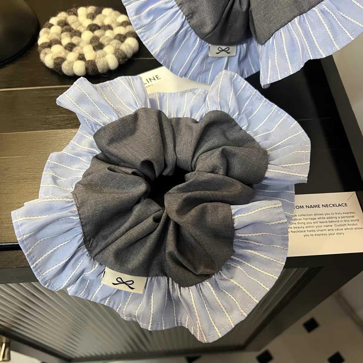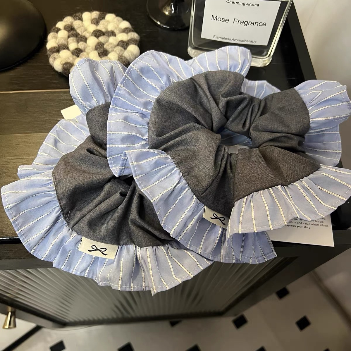 2025 동대문 새 세트 패브릭 학술 스타일 블루 그레이 컬러 매칭 대형 장내 헤어 링 헤어 로프 여성용 헤어 액세서리스토어 가기