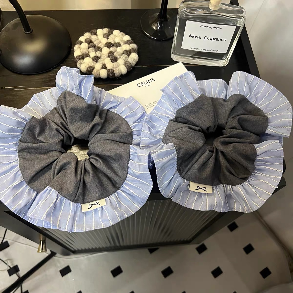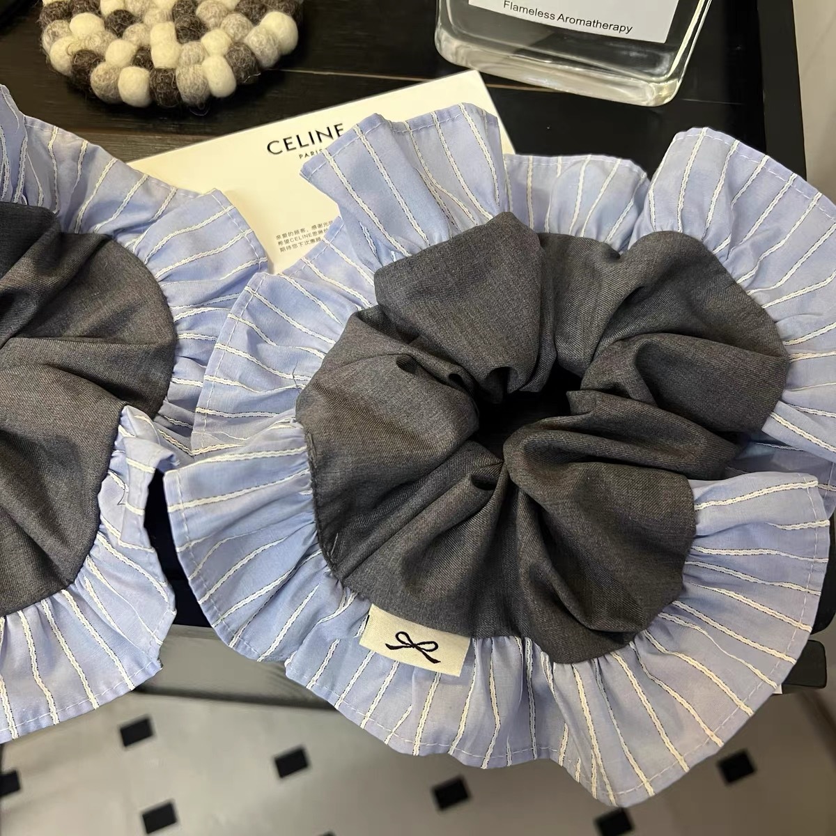2025 동대문 새 세트 패브릭 학술 스타일 블루 그레이 컬러 매칭 대형 장내 헤어 링 헤어 로프 여성용 헤어 액세서리