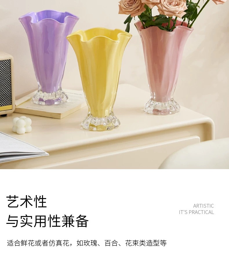 고급 감각 양배추 유리 꽃병 물 올리기 꽃 로즈 릴리 거실 다이닝 테이블 부 장식 홈 장식스토어 가기
