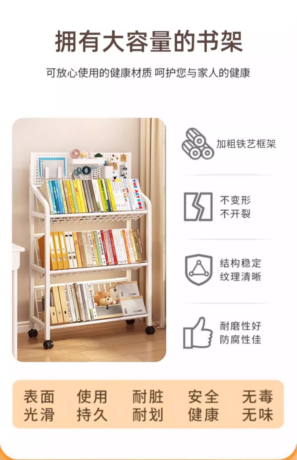 단철 책장 바닥에서 천장까지 이동식 바퀴 달린 어린이 작은 책장 다층 트롤리 보관 랙 구멍 보드스토어 가기