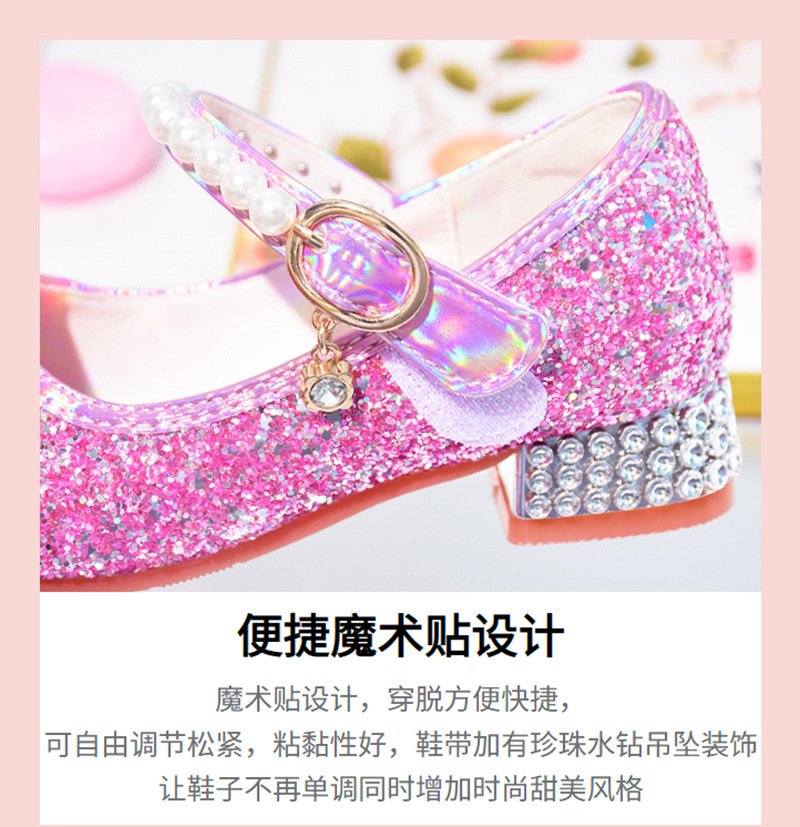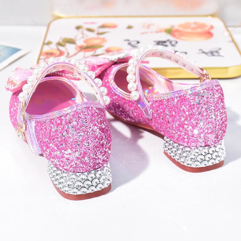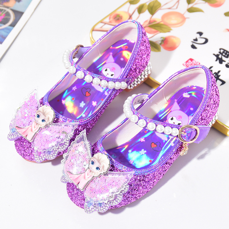 쿠로미 아동화, 여아 하이힐, 공주 드레스 슈즈, 부드러운 밑창 아동용 작은 가죽 신발, 엘사 스팽글 크리스탈 슈즈스토어 가기