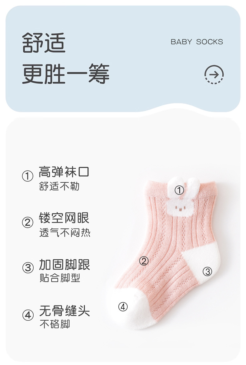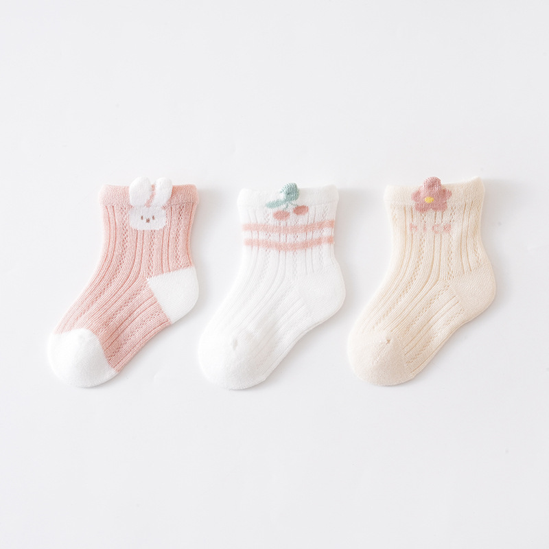 25 Sunseeker Rain Jiachun 여름 새로운 Combed Cotton Class 메시 통기성 아기 양말 만화 뼈없는 아기 양말