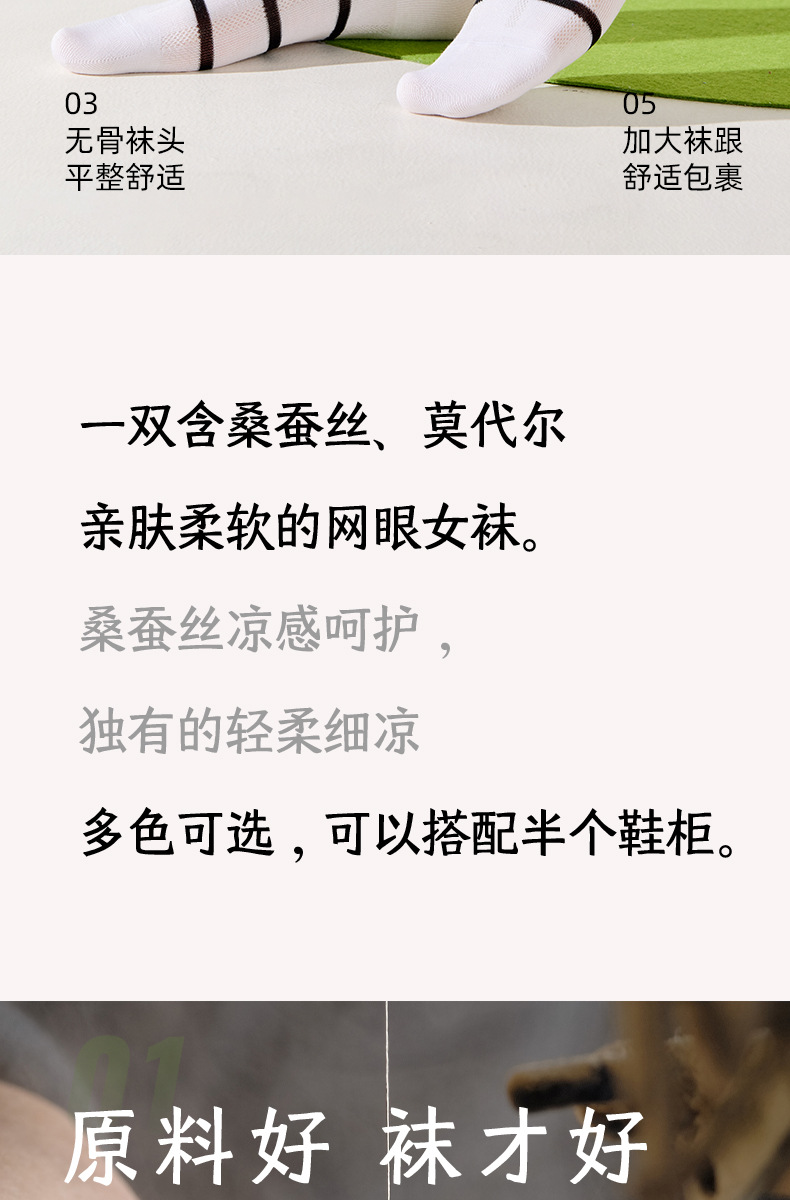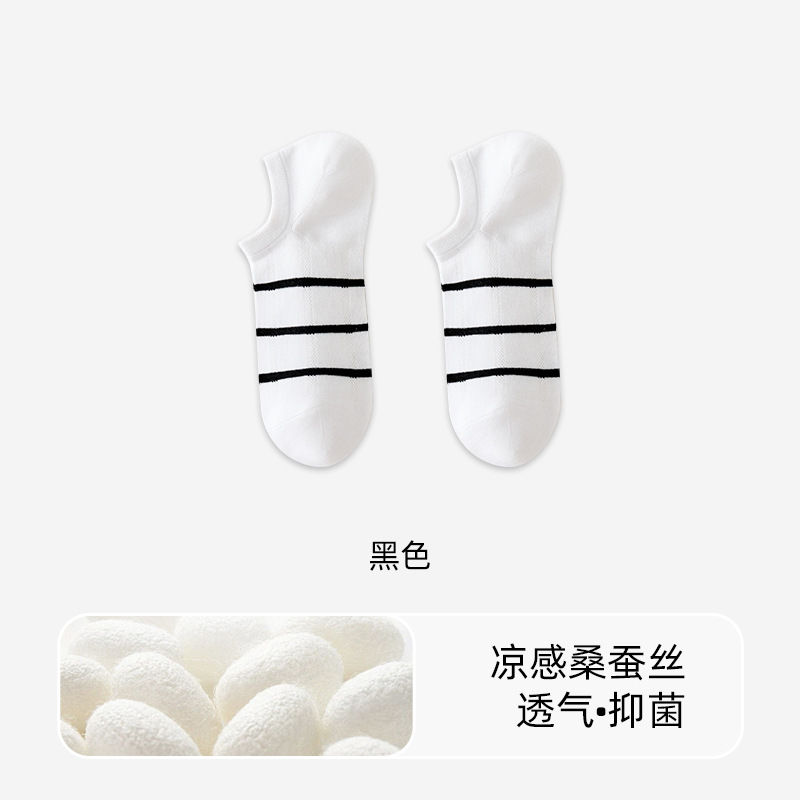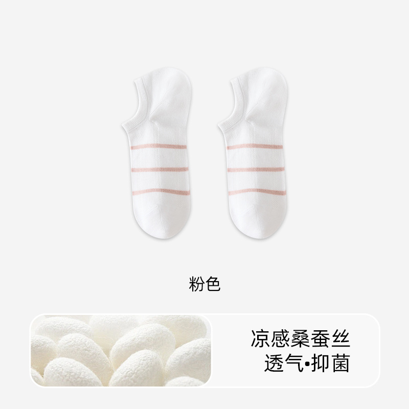 여성용 양말 여름 얇은 뽕나무 실크 스트라이프 여성용 보트 양말 모달 메쉬 통기성 항균 및 탈취제 여성용 발 양말스토어 가기