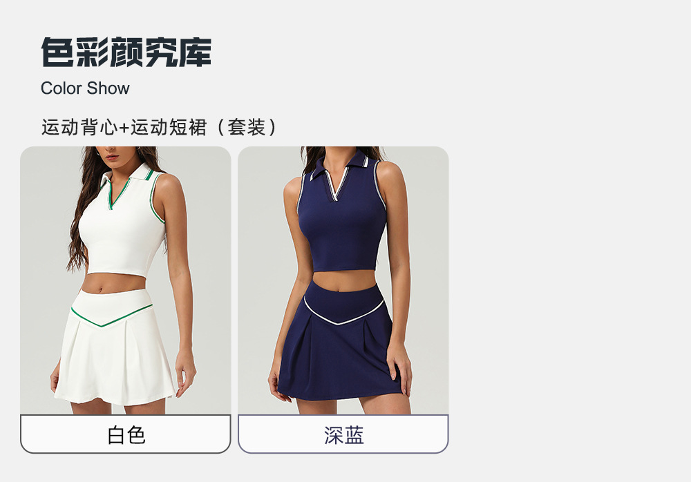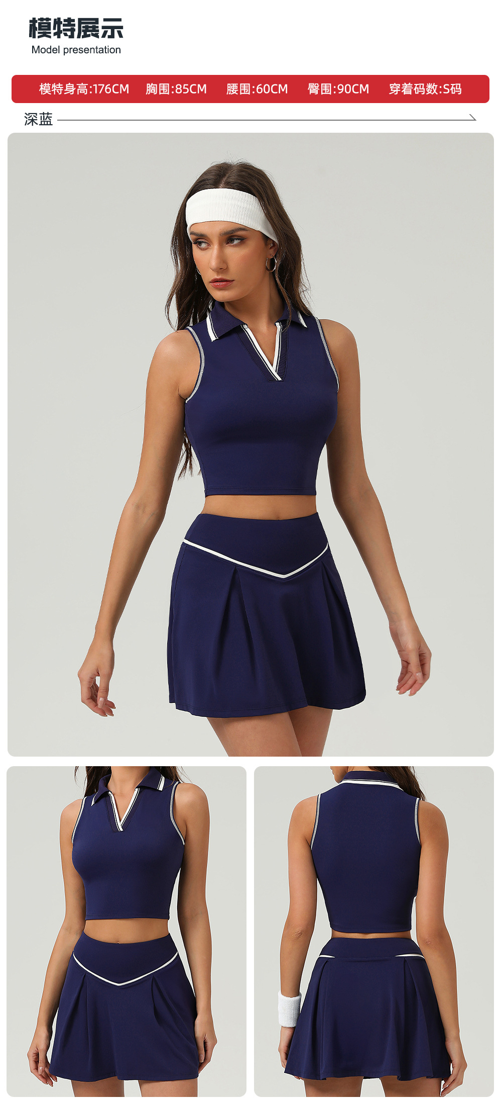 유럽과 미국의 국경 테니스 스커트 세트 골프 테니스 스커트 스포츠 캐주얼 배드민턴 의류 세트 여성