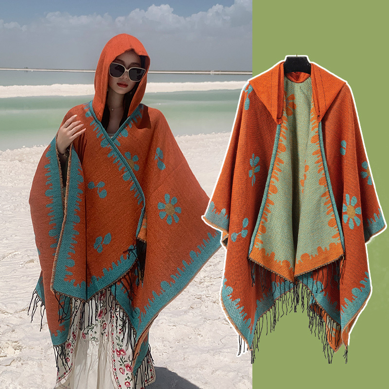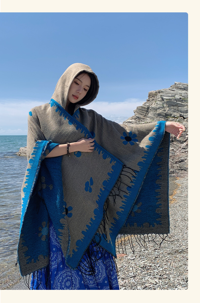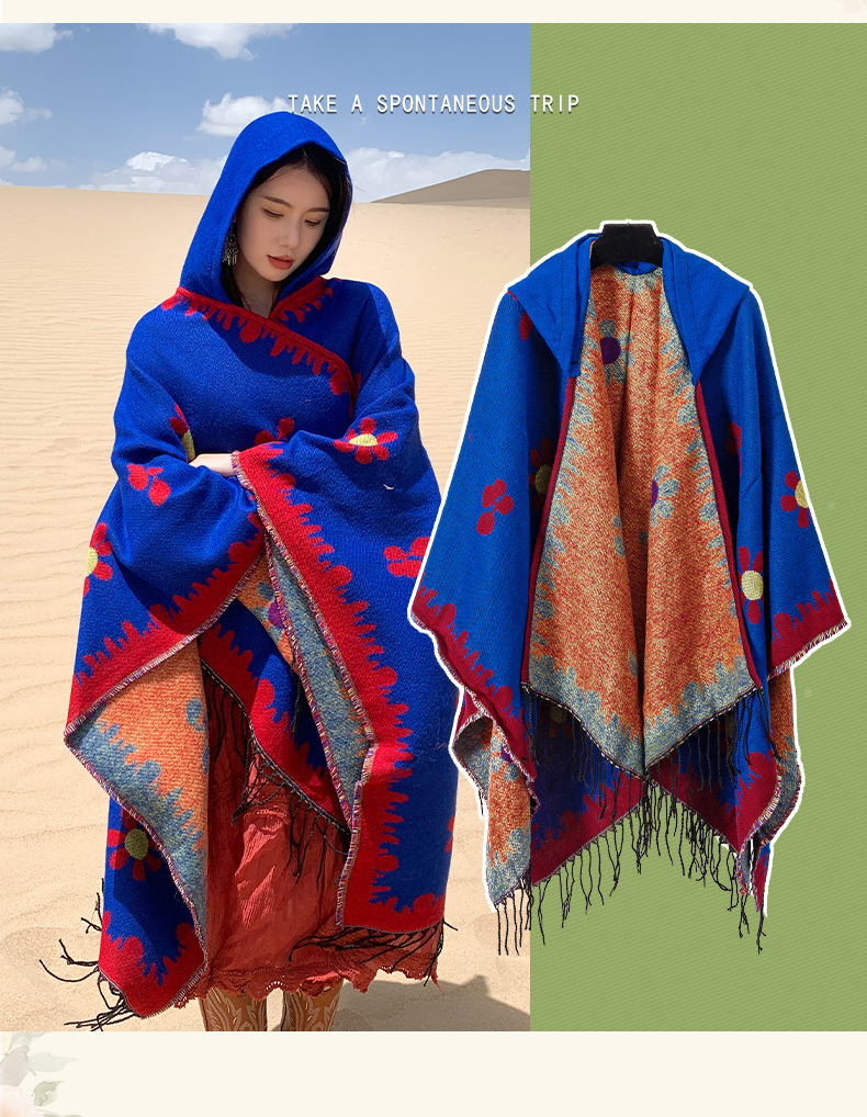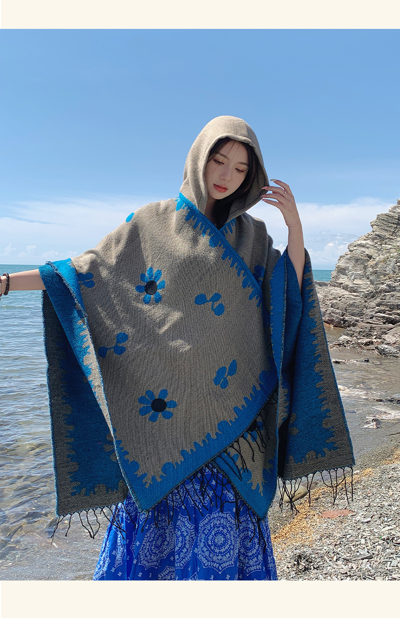 2025 레트로 에스닉 스타일 놀이 사진 촬영 숄 캐주얼하고 편안하며 통기성이 좋은 스카프와 대형 망토 여행용 망토스토어 가기
