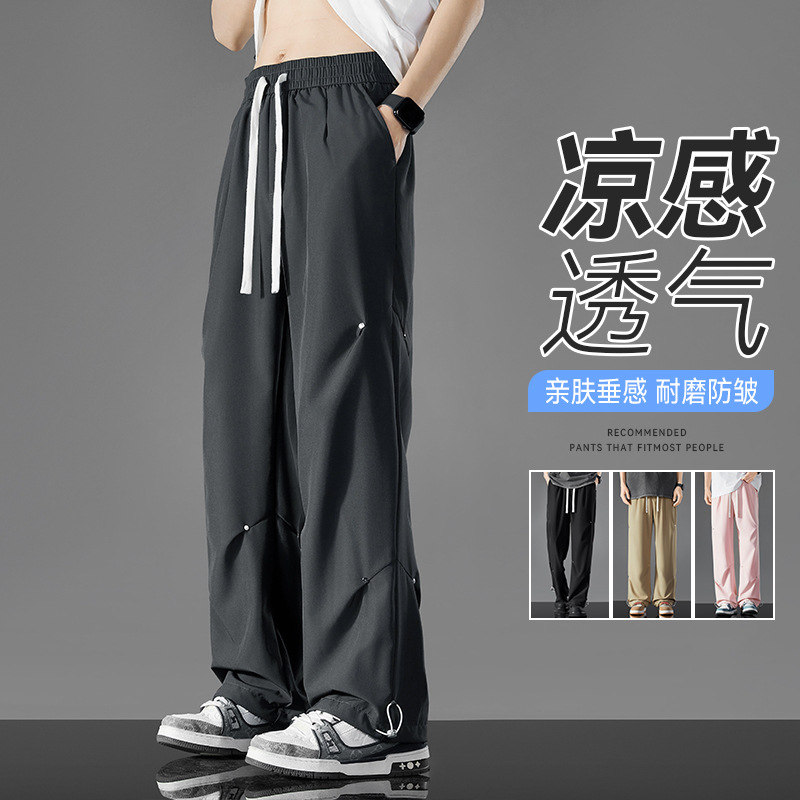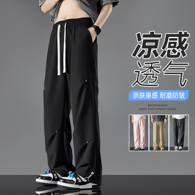 학생 미국 여름 작업복 남성용 봄, 가을 유행 브랜드 루즈한 기능성 얇은 스트레이트 점퍼 바지 남성용스토어 가기