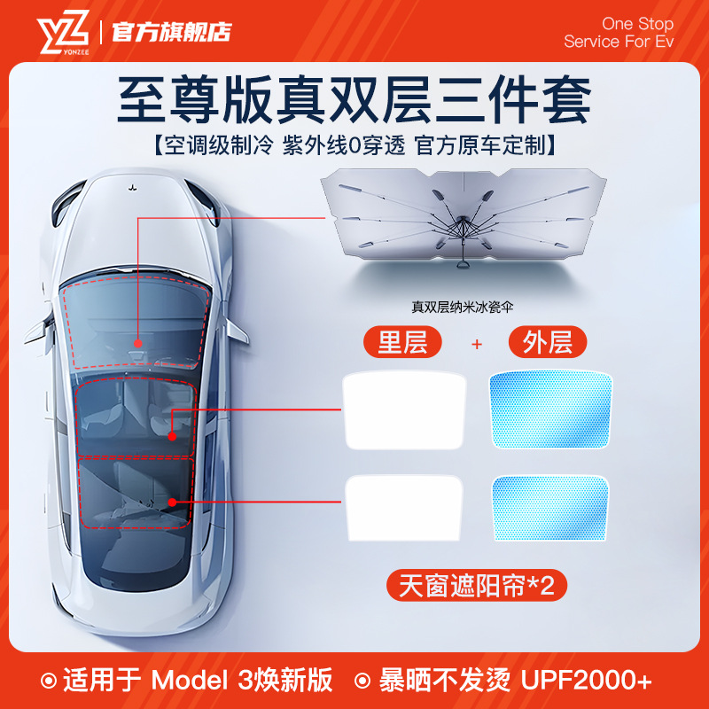 YZ Tesla Sunshade Umbrella model3y 회춘 신판 자동차 앞 유리 태양 보호 Ya 액세서리에 적합스토어 가기