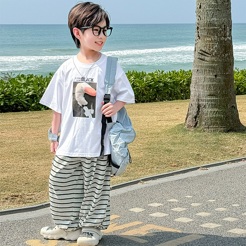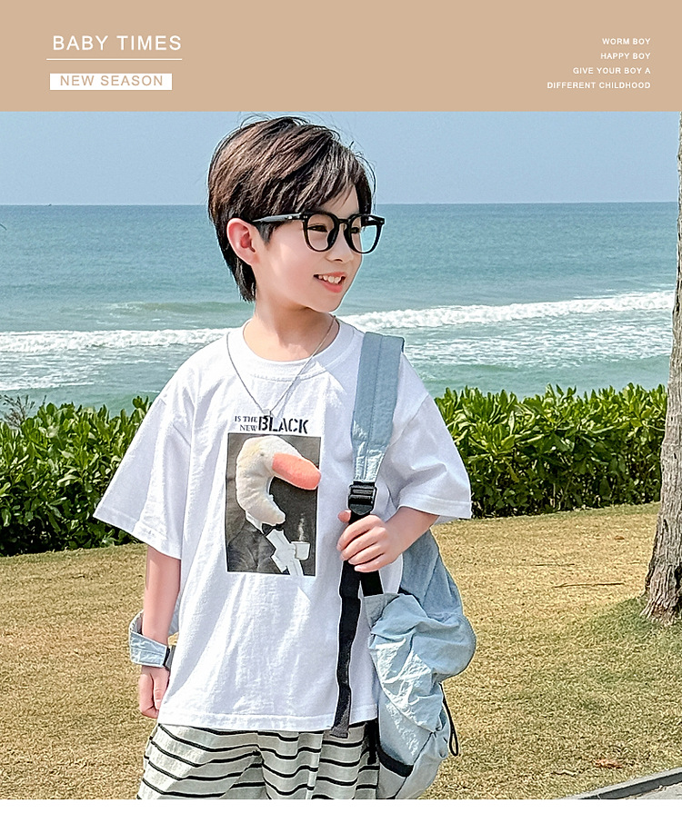 남자들의 반소매 여름 2025 새로운 아동용 코튼 티셔츠 여름 원피스 소년의 길거리 반팔 티셔츠 핸즈솜 탑